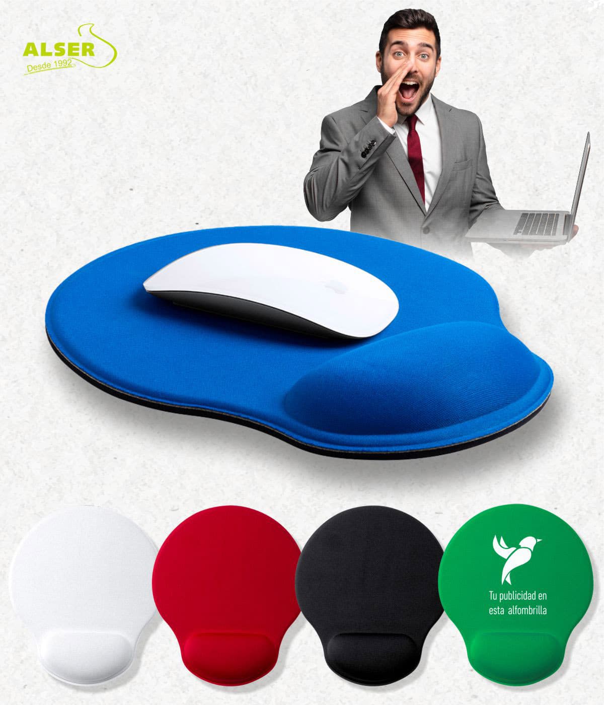 Pero ¡¡Tachan!! Aquí llega la alfombrilla de ratón con reposamuñecas para salvar tus muñecas del drama diario. Este accesorio ergonómico no solo mima tus manos, sino que también convierte cualquier escritorio en un espacio publicitario de primera.