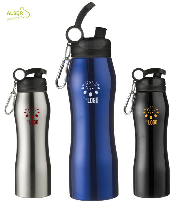 Porque tiene ese aire de compañero fiel, resistente y elegante. Porque hidrata en medio de una ruta y se convierte en excusa para seguir pedaleando un poco más. Porque colgado con su mosquetón te recuerda que siempre está cerca. Porque cada vez que alguien bebe de él, tu marca también refresca. Y porque, más allá de un simple regalo, se siente como un detalle pensado para durar.