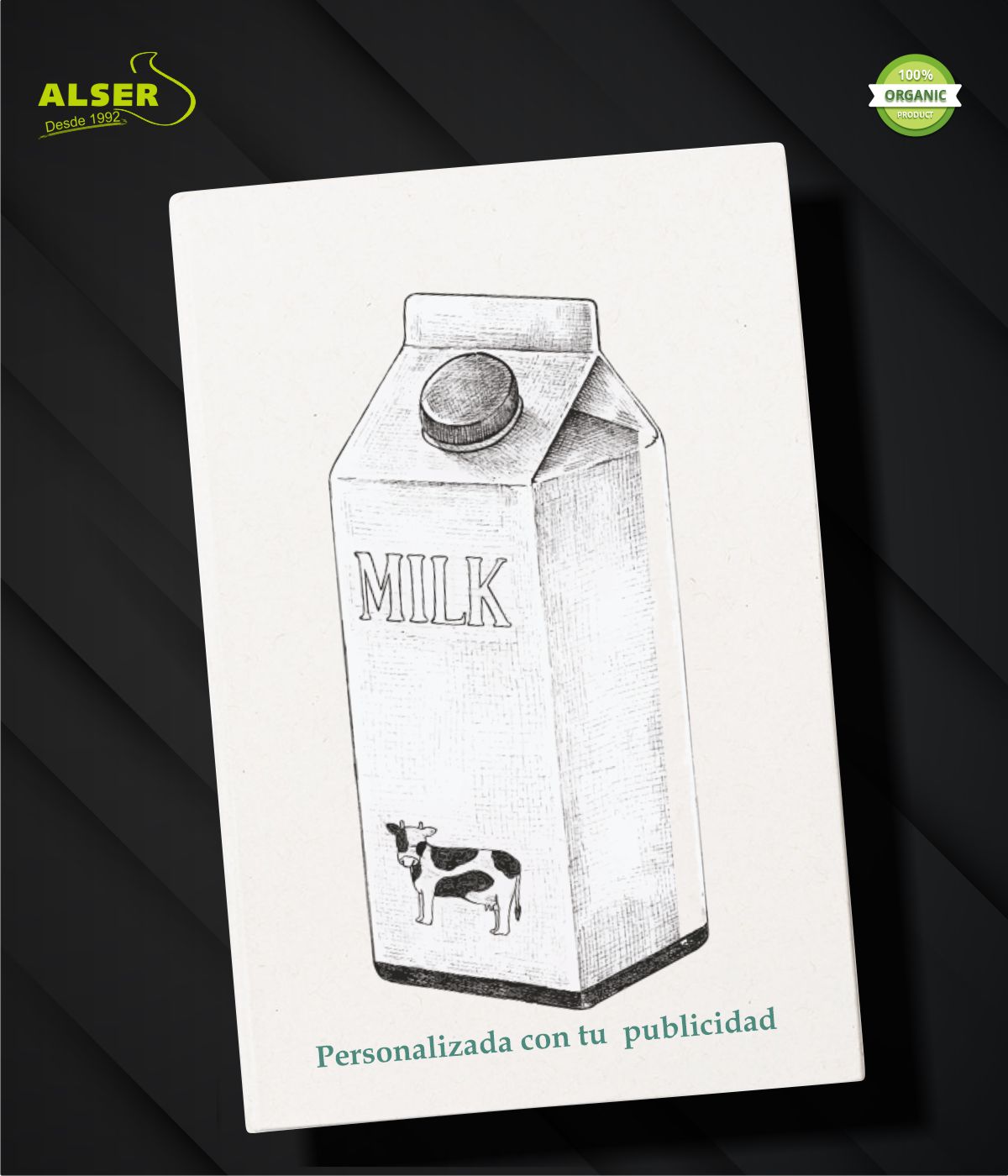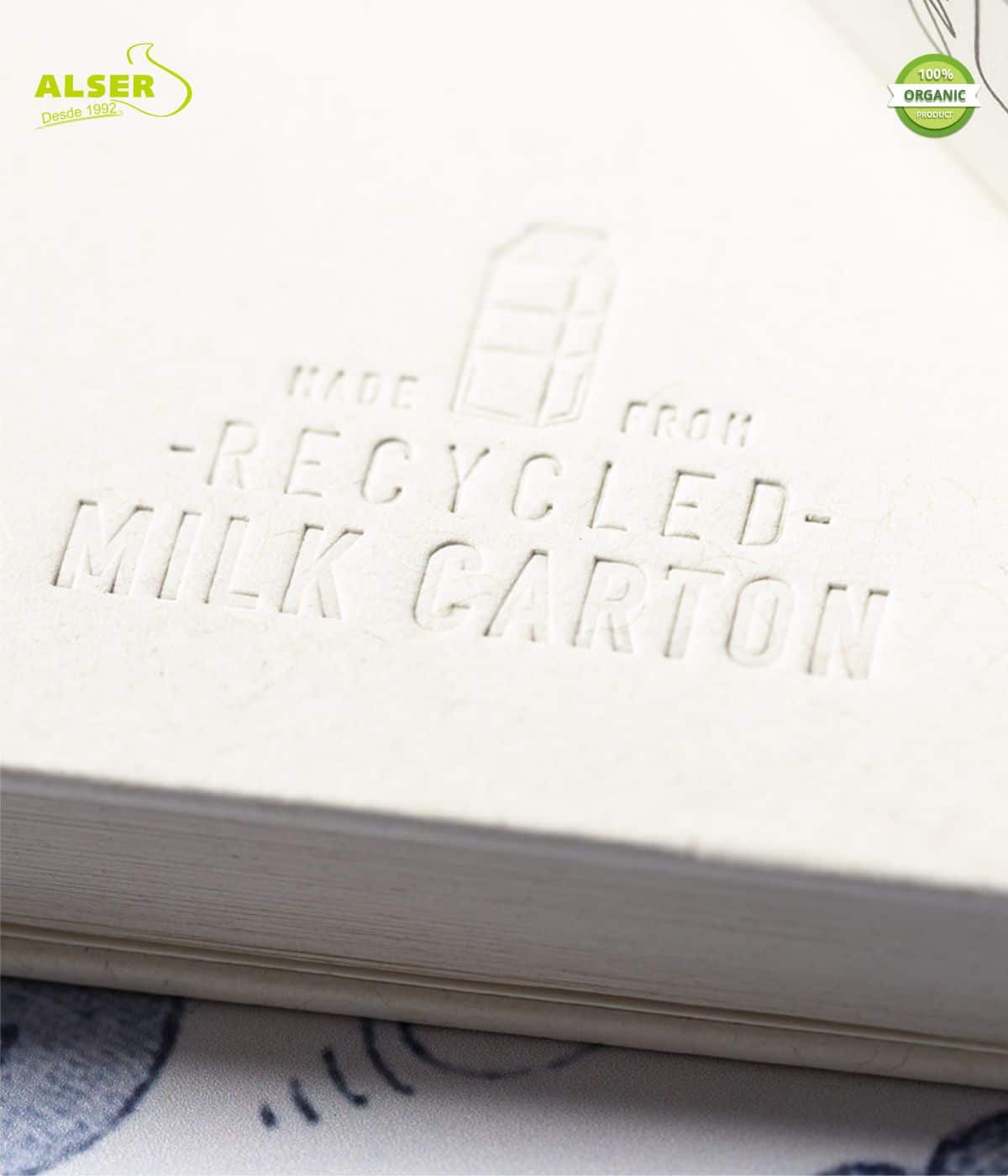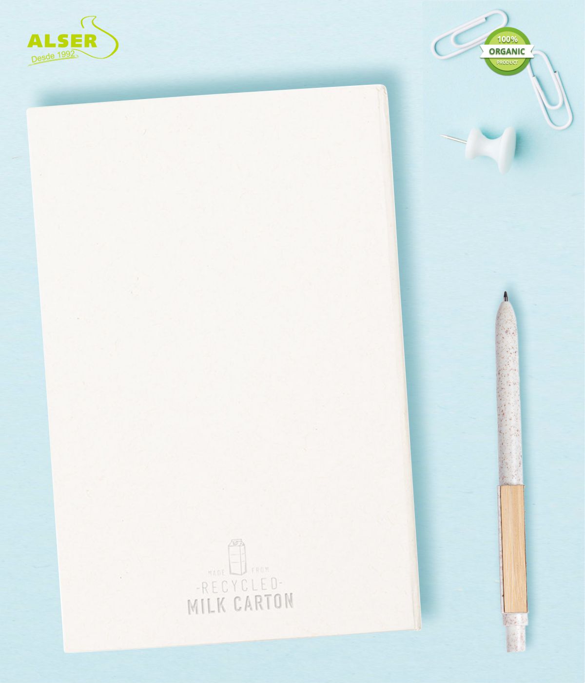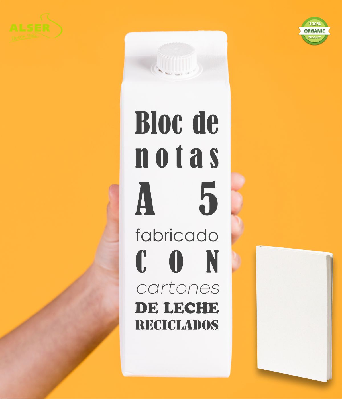 Bloc  A5 sostenible, fabricado con cartones de leche desechados.