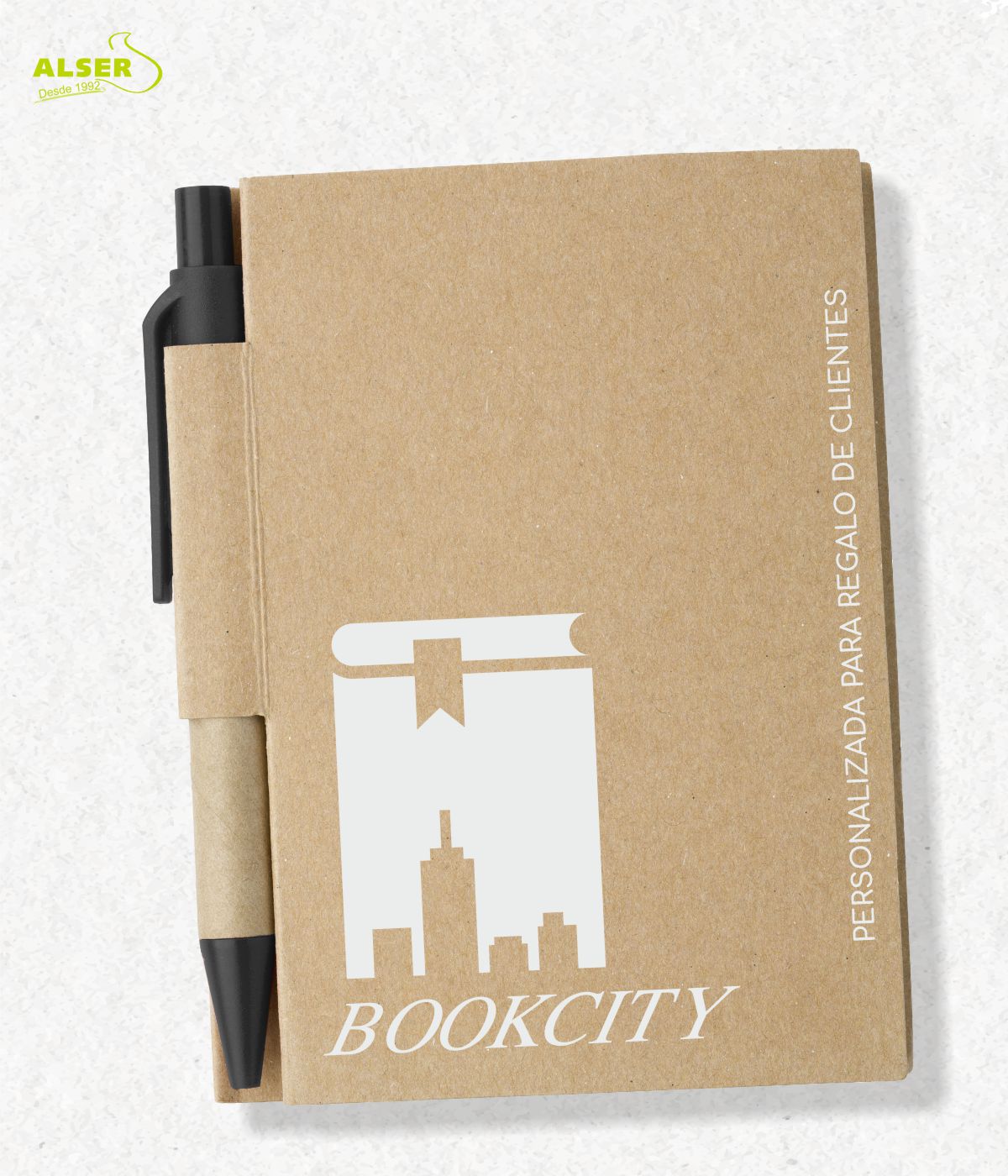 Porque parece mentira todo lo que cabe en algo tan pequeño. Porque es ecológico, pero sin renunciar al diseño. Porque lleva bolígrafo incluido, y eso siempre es un puntazo. Porque es útil, cotidiano y con ese punto de cercanía que convierte un regalo publicitario en algo que se valora. Y porque cuando lo tienes en la mano, sabes que no va a acabar en un cajón olvidado. Es práctico de verdad. Y nos encanta.