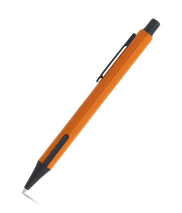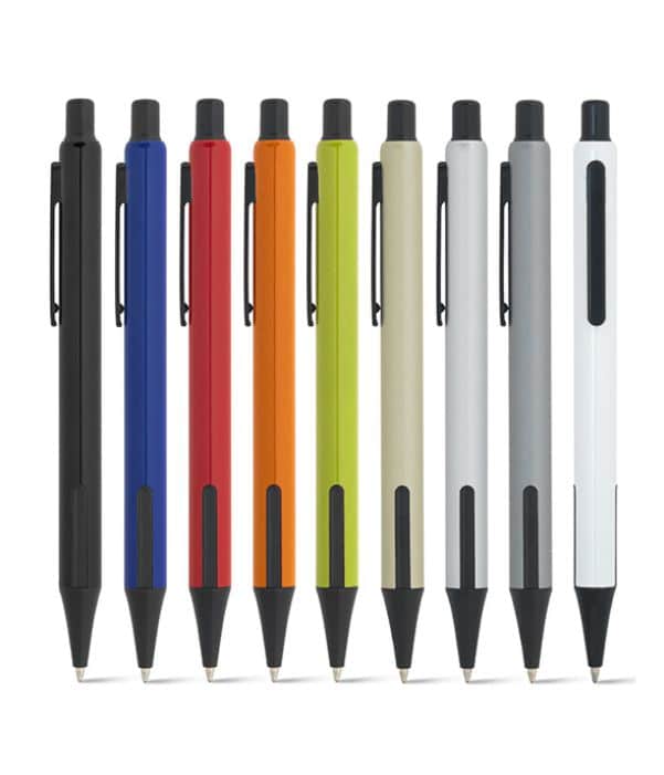 Punta, clip, pulsador y detalles en la parte inferior del cuerpo en color negro.