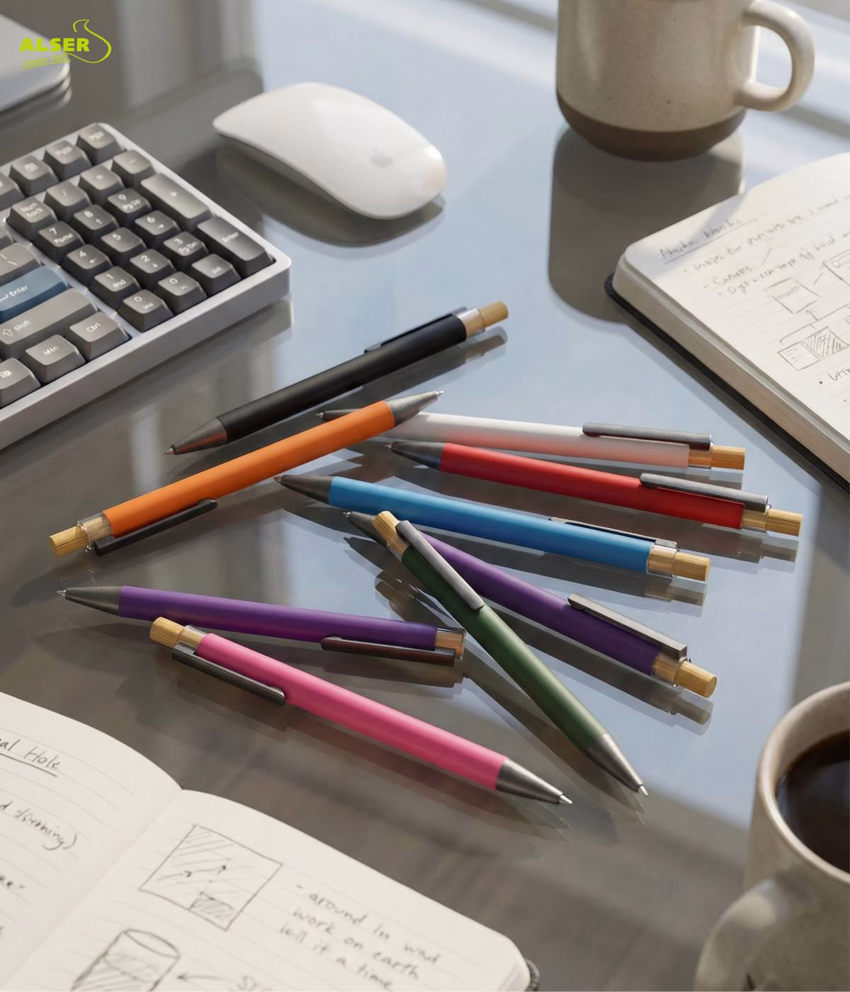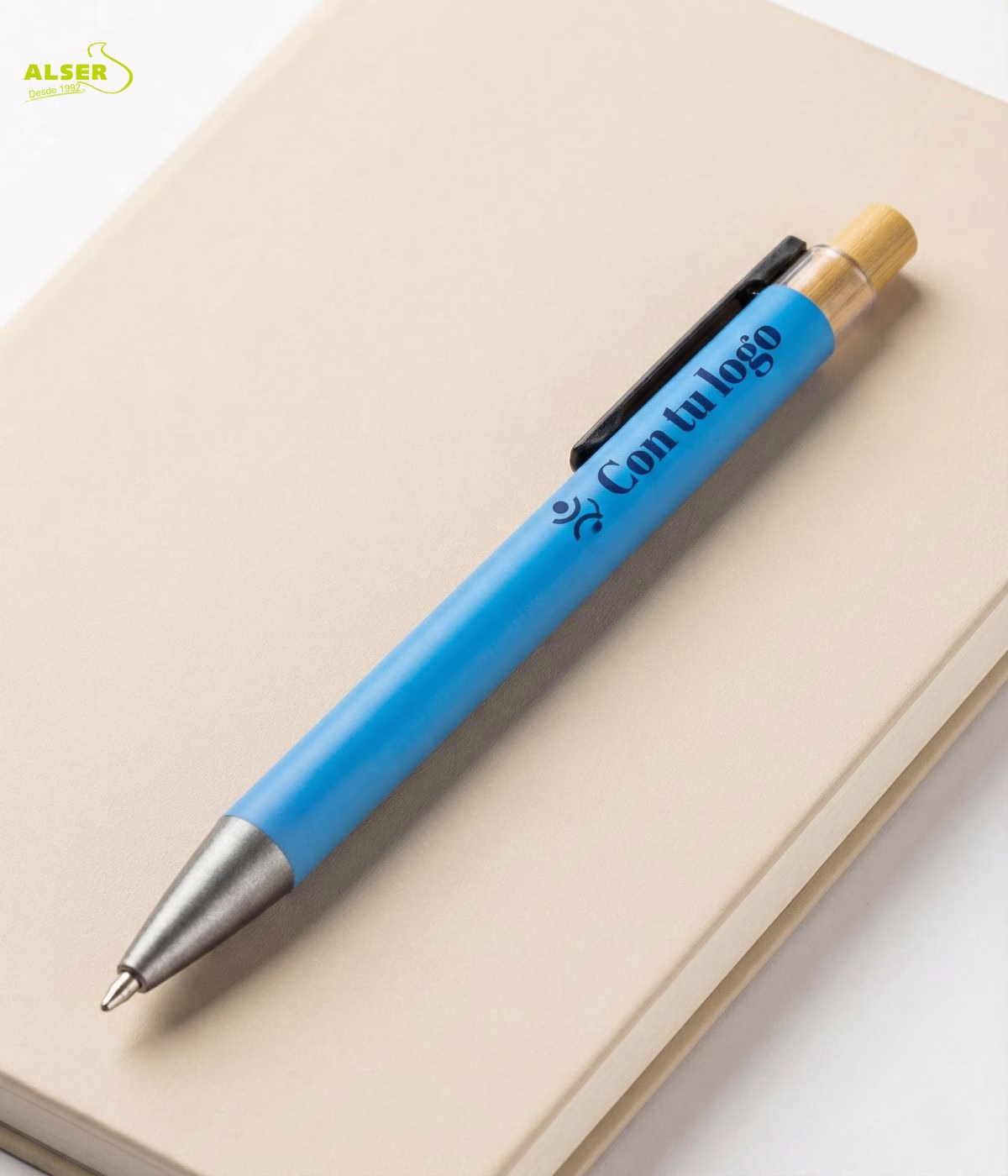 Es de esos bolígrafos que coges para firmar y piensas: este sí. Y claro, tu marca va justo ahí, acompañando el gesto.