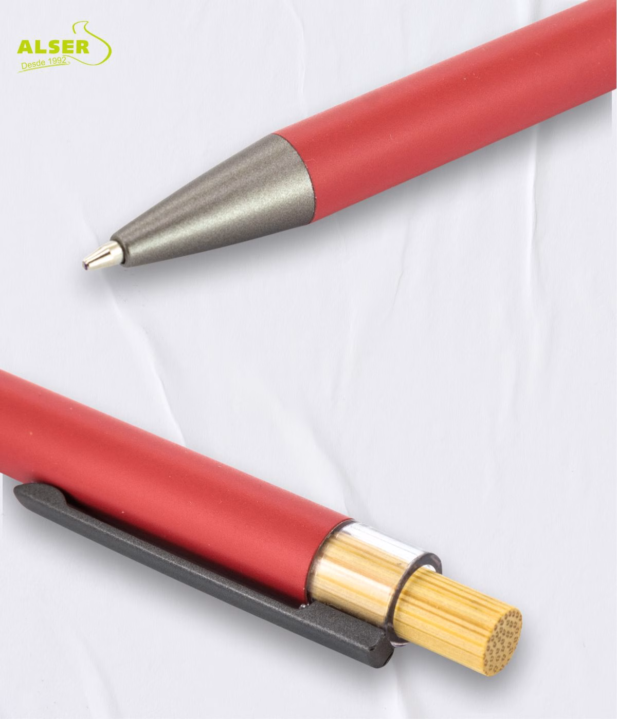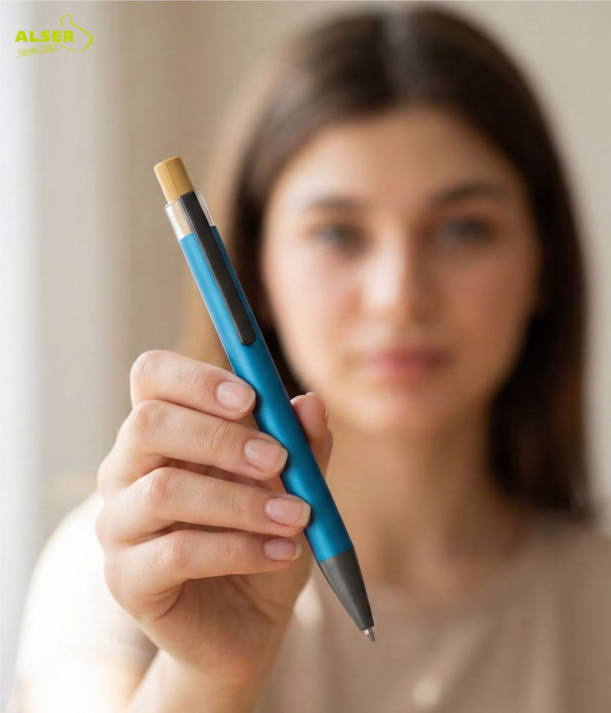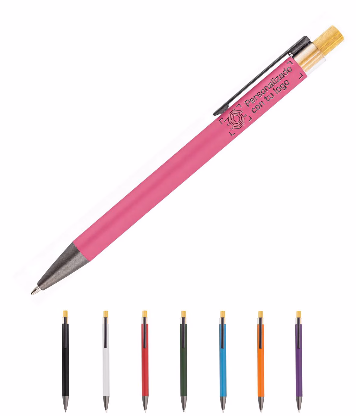 Porque tiene ese equilibrio difícil entre diseño, precio y calidad percibida. Porque el tacto mate engancha, el bambú aporta calidez y el conjunto se siente serio pero actual. Y porque es uno de esos bolígrafos que no se pierden: se usan, se prestan, se recomiendan… y tu marca va siempre de la mano.