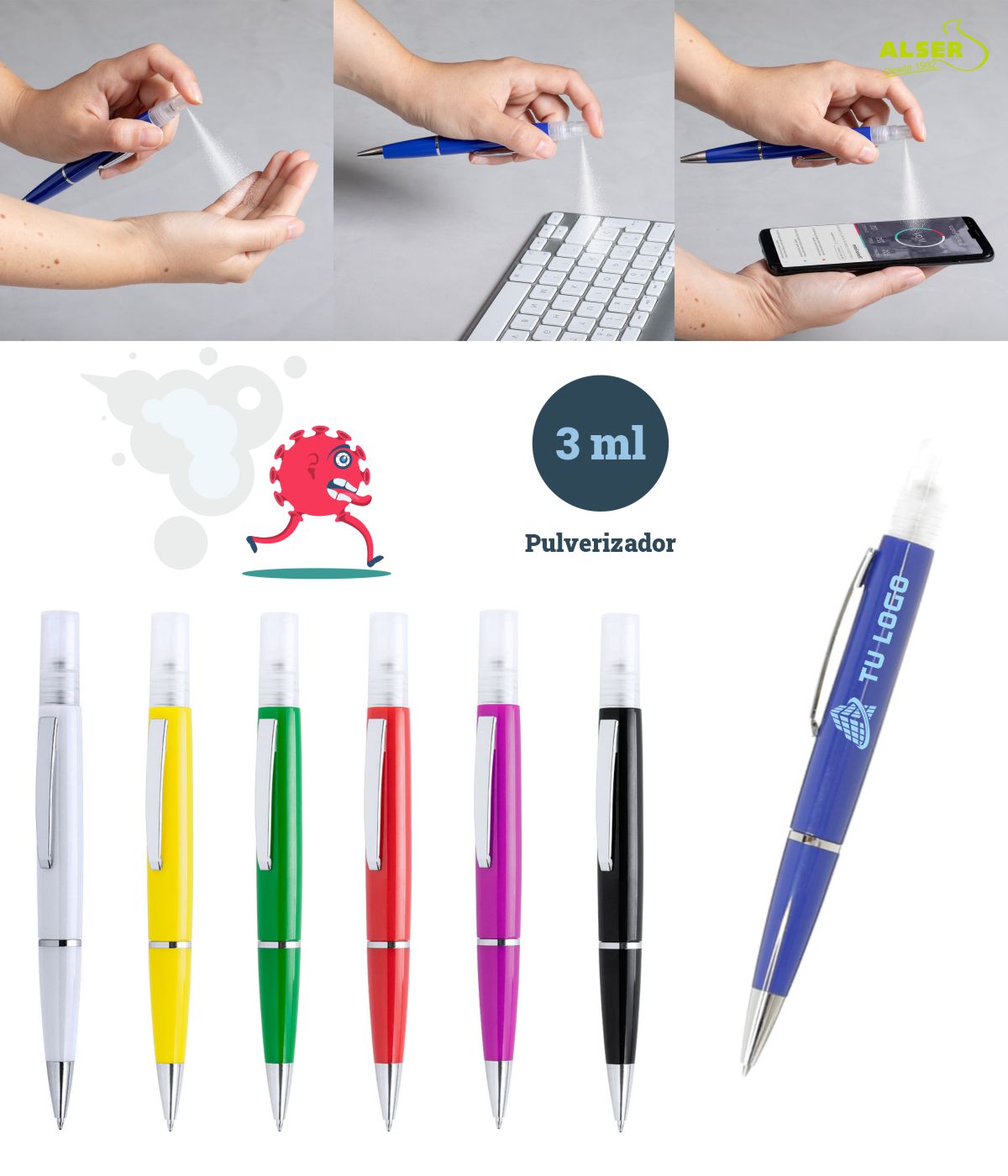 bolígrafo recargable con spray higienizante