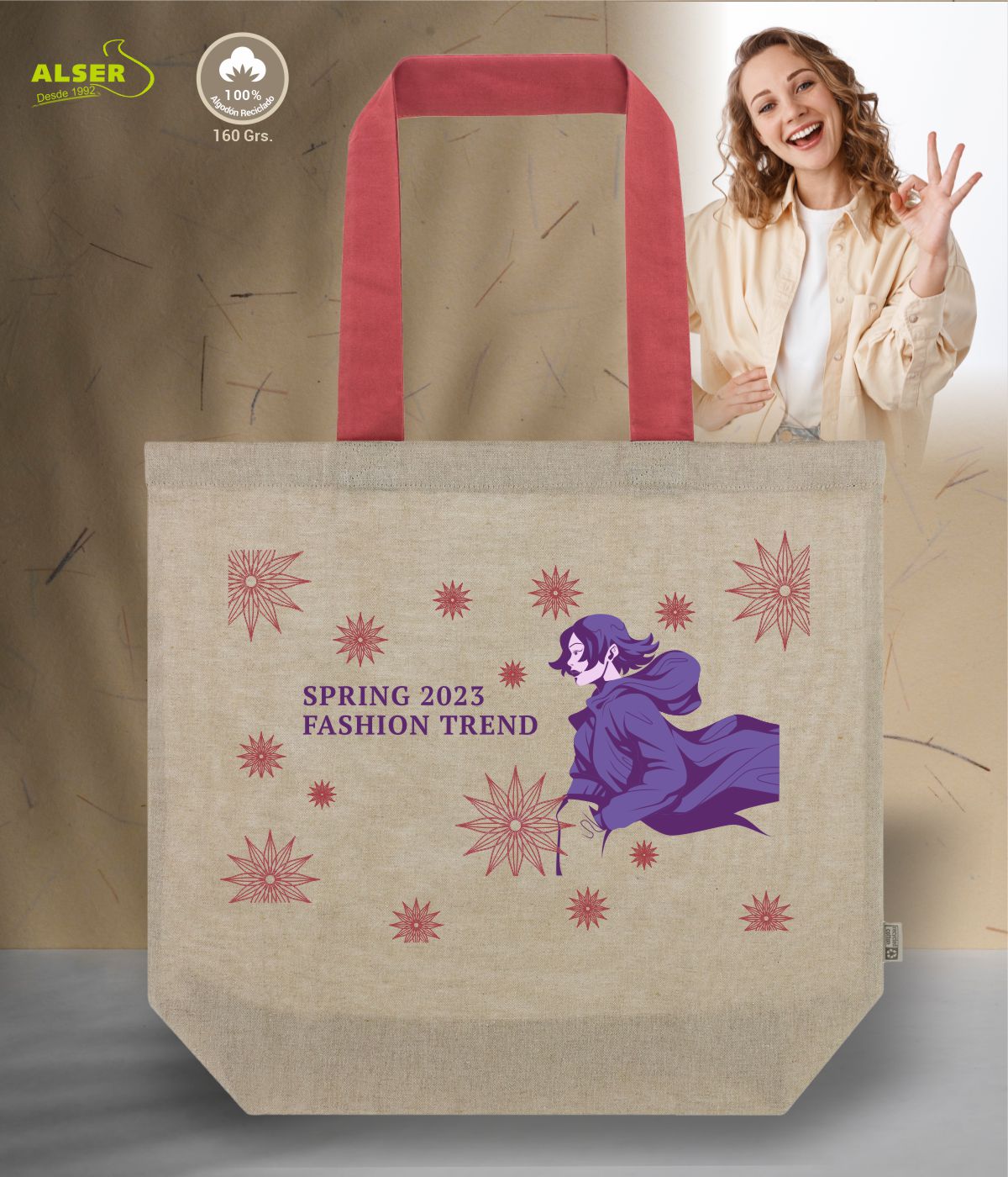 No solo es práctica y bonita, con esas asas tan llamativas en color, sino que también lleva el mensaje de una marca moderna, consciente y comprometida con el futuro. ¡Es el detalle perfecto para eventos, ferias y como regalo corporativo que realmente marca la diferencia! 🎉🌟