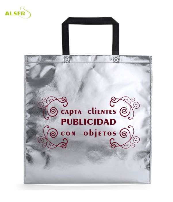 ¿El secreto? El material Non Woven laminado. Le da ese toque metalizado que resiste, que no se raya fácilmente y que mantiene el brillo. Es la mezcla perfecta entre estética y utilidad, entre lo promocional y lo bonito.