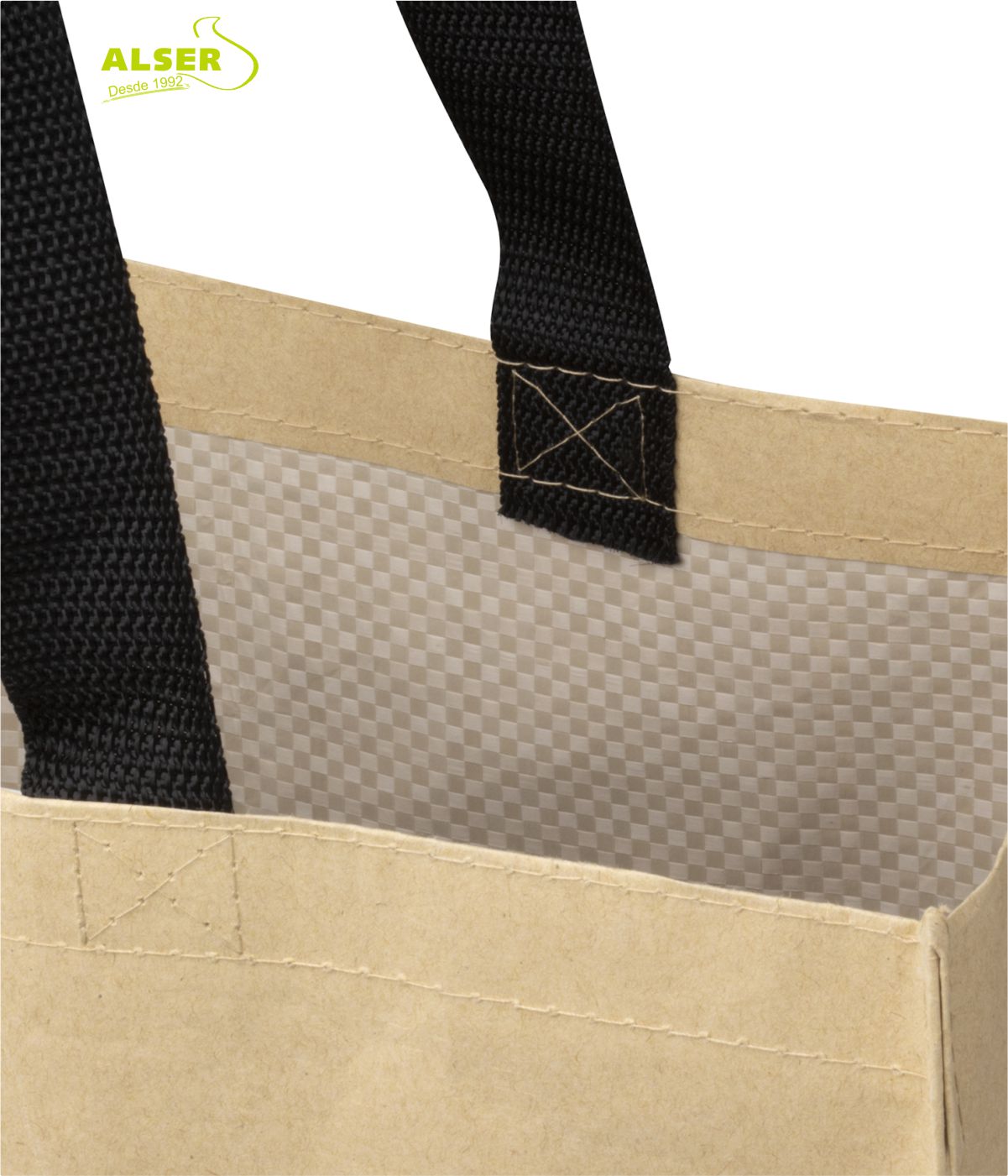 • Asas negras de polipropileno cosidas en «X» para dotarlas de mayor resistencia al desgarro.