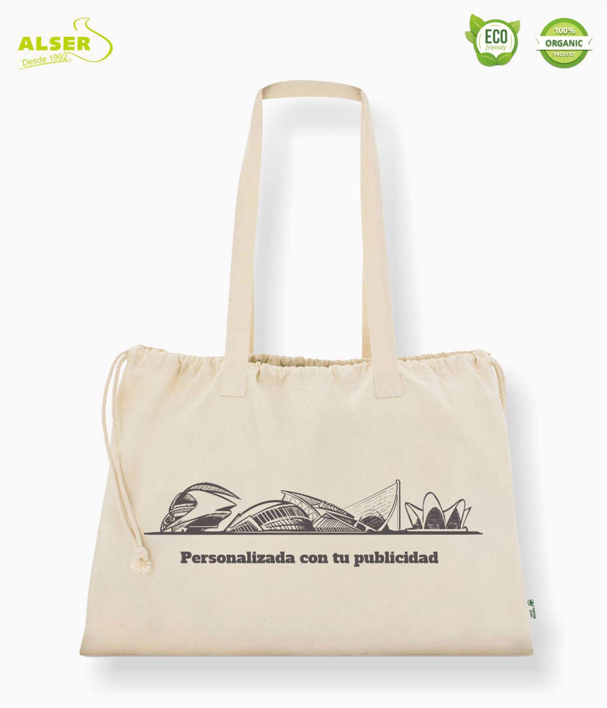 Porque tiene ese aire de clásico que nunca decepciona. Me encanta que sea enorme, que no te deja tirado cuando llevas medio supermercado dentro. El cordón le da seguridad, las asas gorditas son comodísimas, y además sabes que estás regalando algo que se usa mil veces sin perder estilo. Y esa sensación de cuidar el planeta mientras tu logo se pasea por ahí… ¡es un win-win de manual!