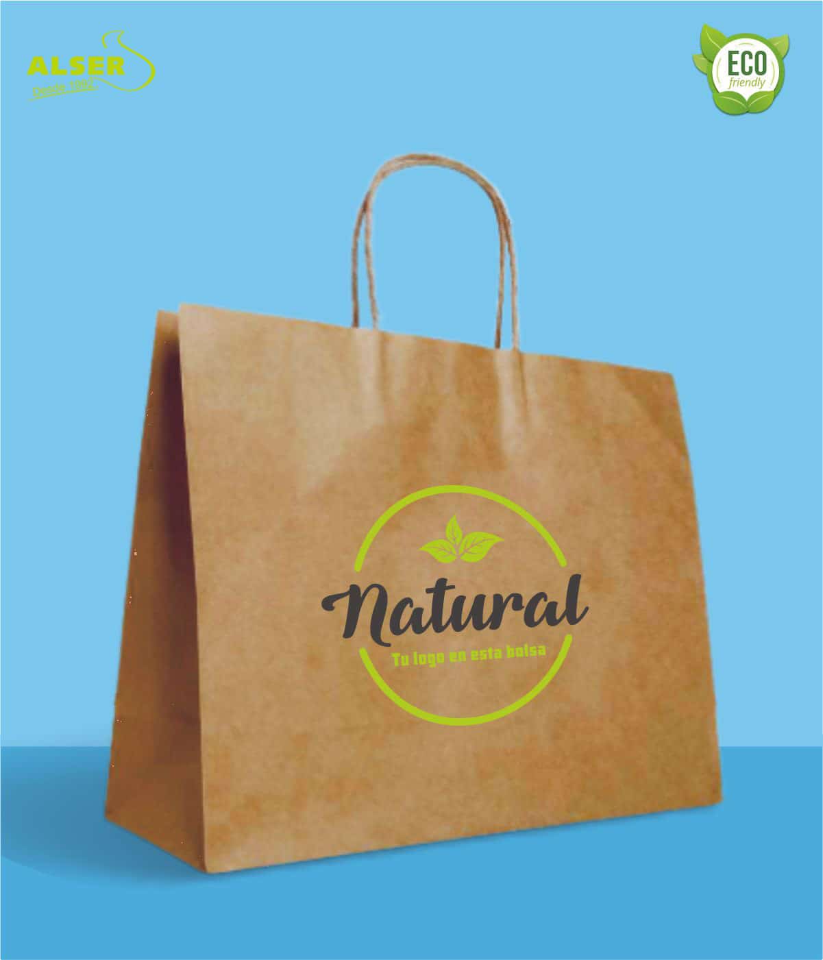 • Bolsa fabricada en papel Kraft liso.