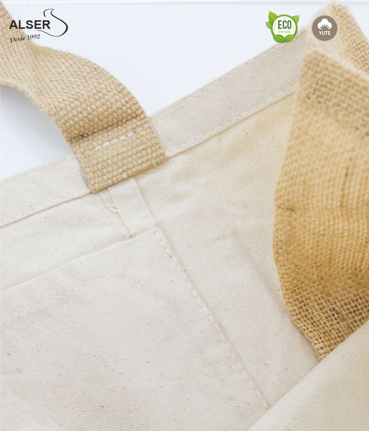 Con sus 310 gramos de gramaje, esta bolsa de yute con asas es casi indestructible. El algodón canvas le da ese cuerpo sólido y gustoso al tacto, mientras que el yute natural asegura resistencia y un look eco que enamora.