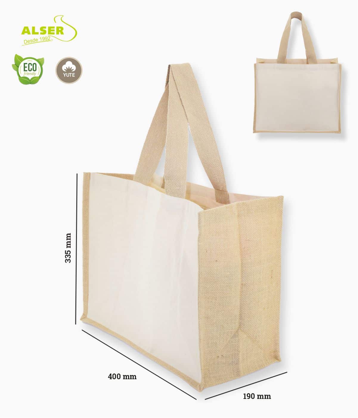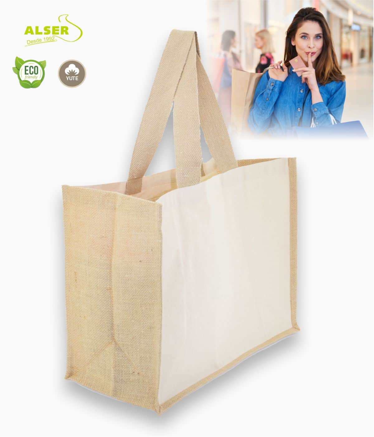 Fabricada con yute laminado y algodón canvas, esta bolsa de tela reutilizable tiene el poder de cambiar muchas cosas: tu imagen de marca, la percepción de tu negocio… y, por qué no, el planeta.