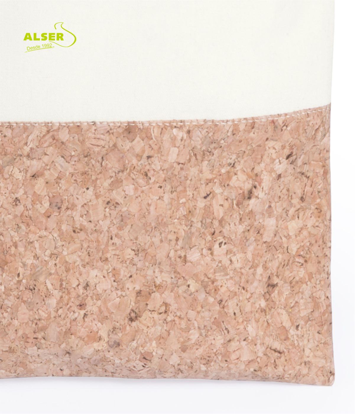 • Ecológica:  Algodón natural y corcho son los originales materiales que se combinan esta bolsa. Biodegradable, reciclable y natural.