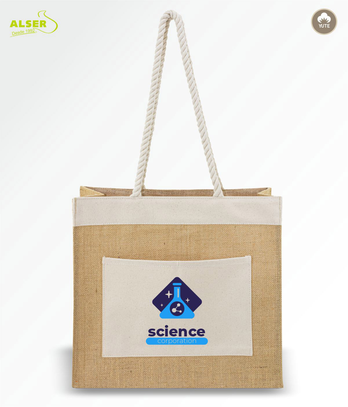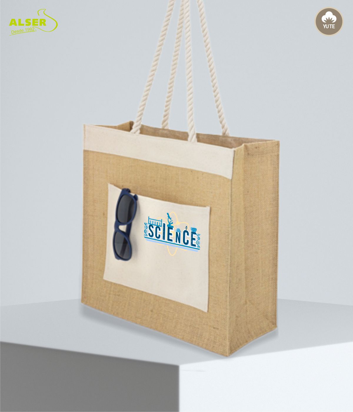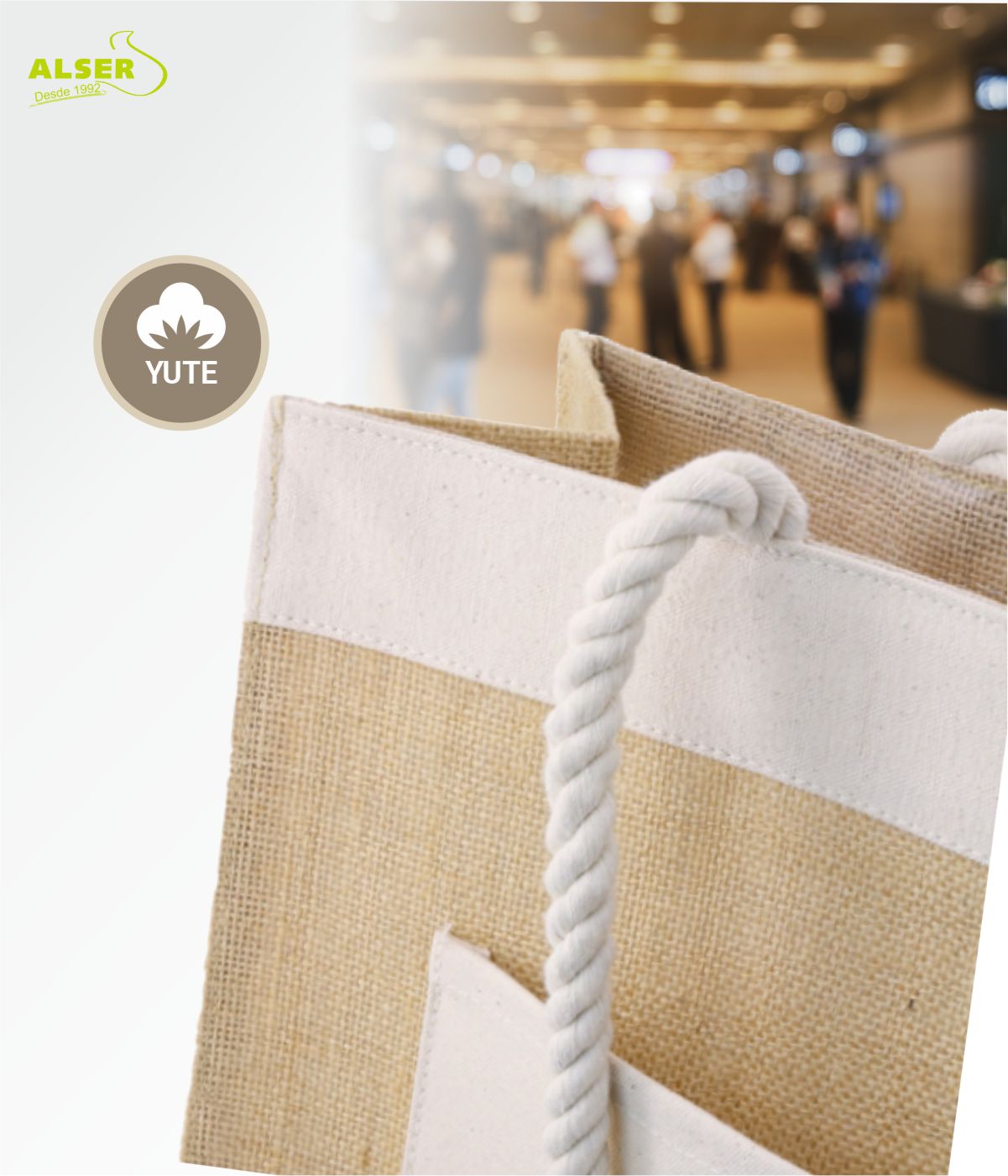 Está hecha de yute, un material tan ecológico como resistente. Vamos, que aguanta lo que le eches: folletos, muestras, el portátil o incluso los snacks que «no ibas a comprar».