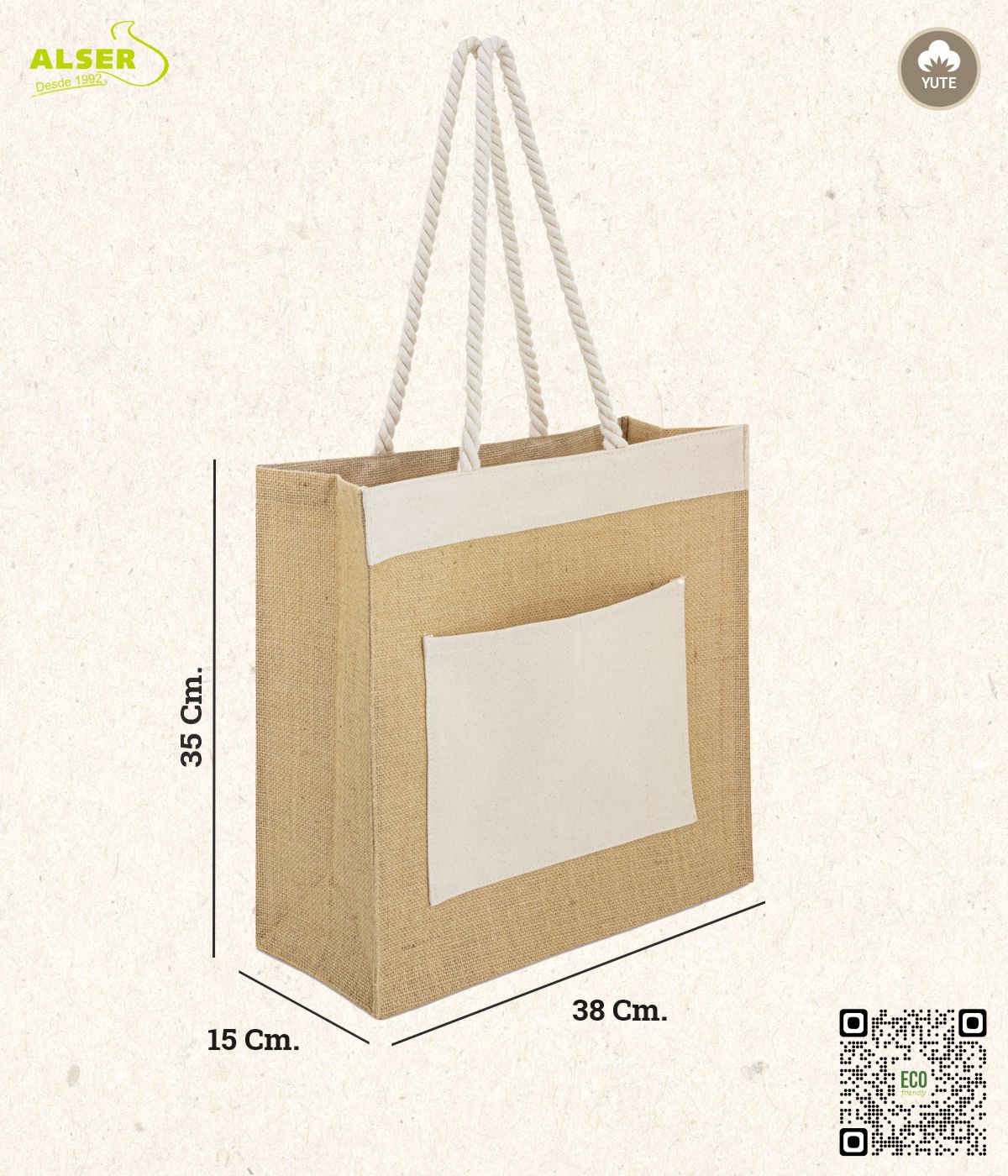 Nos gusta por: Su capacidad infinita (o casi), sus asas cómodas y ese aire eco-chic. Y porque, seamos sinceros, ¡es tan práctica que tus clientes la van a llevar todos los días!