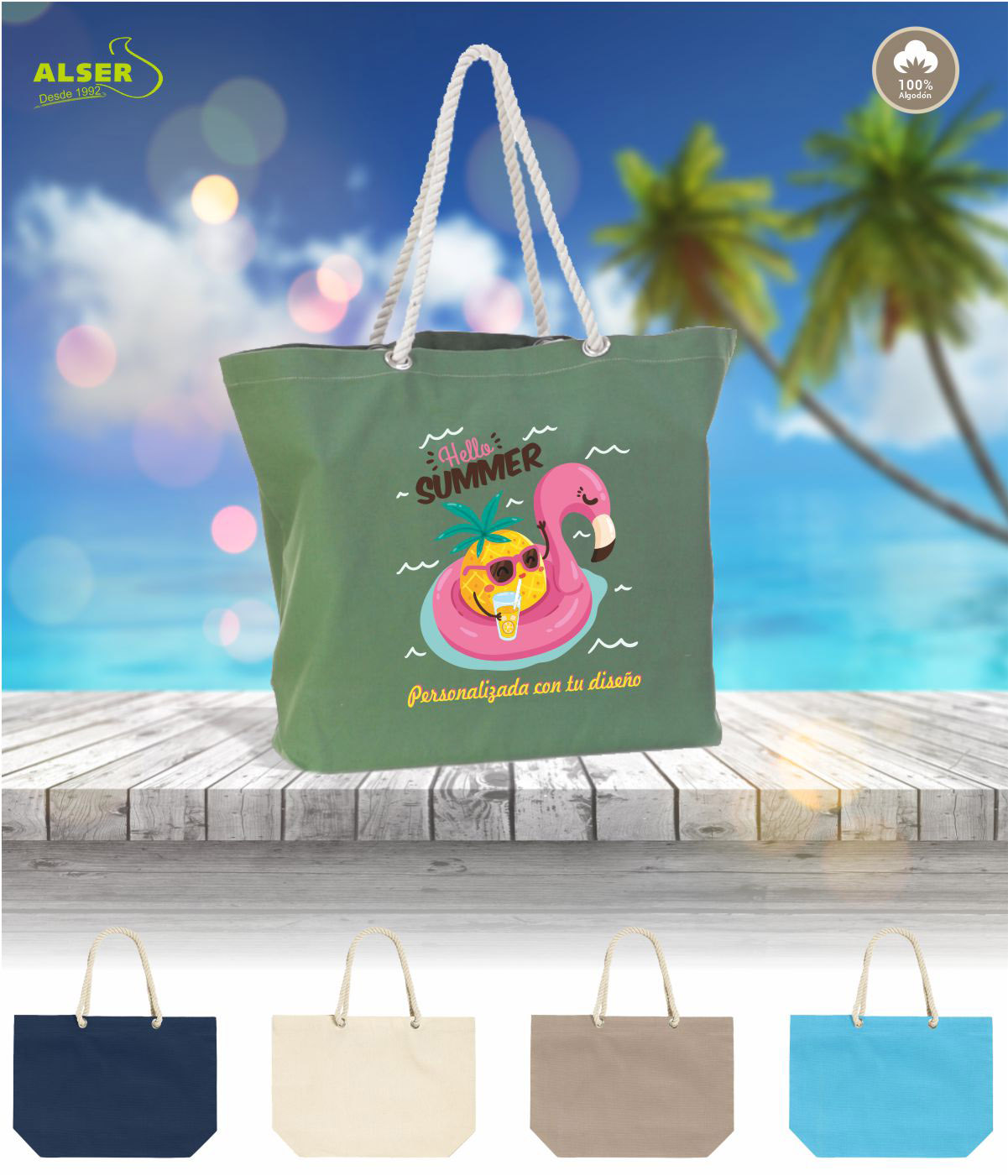 Porque no es solo una bolsa: es un símbolo del verano, de relax, de color y de conexión. Porque cuando la llevas, sientes que ya estás de vacaciones. Porque lo aguanta todo sin perder la forma. Porque se personaliza fácil, se adapta a cualquier estilo, y hace que tu logo se luzca bajo el sol. Porque cada vez que metes algo en ella, estás metiendo visibilidad para tu marca. Y porque, sinceramente, no hay nada como una bolsa que combina utilidad, estética y buenos valores. ¡Eso sí que es publicidad que mola!