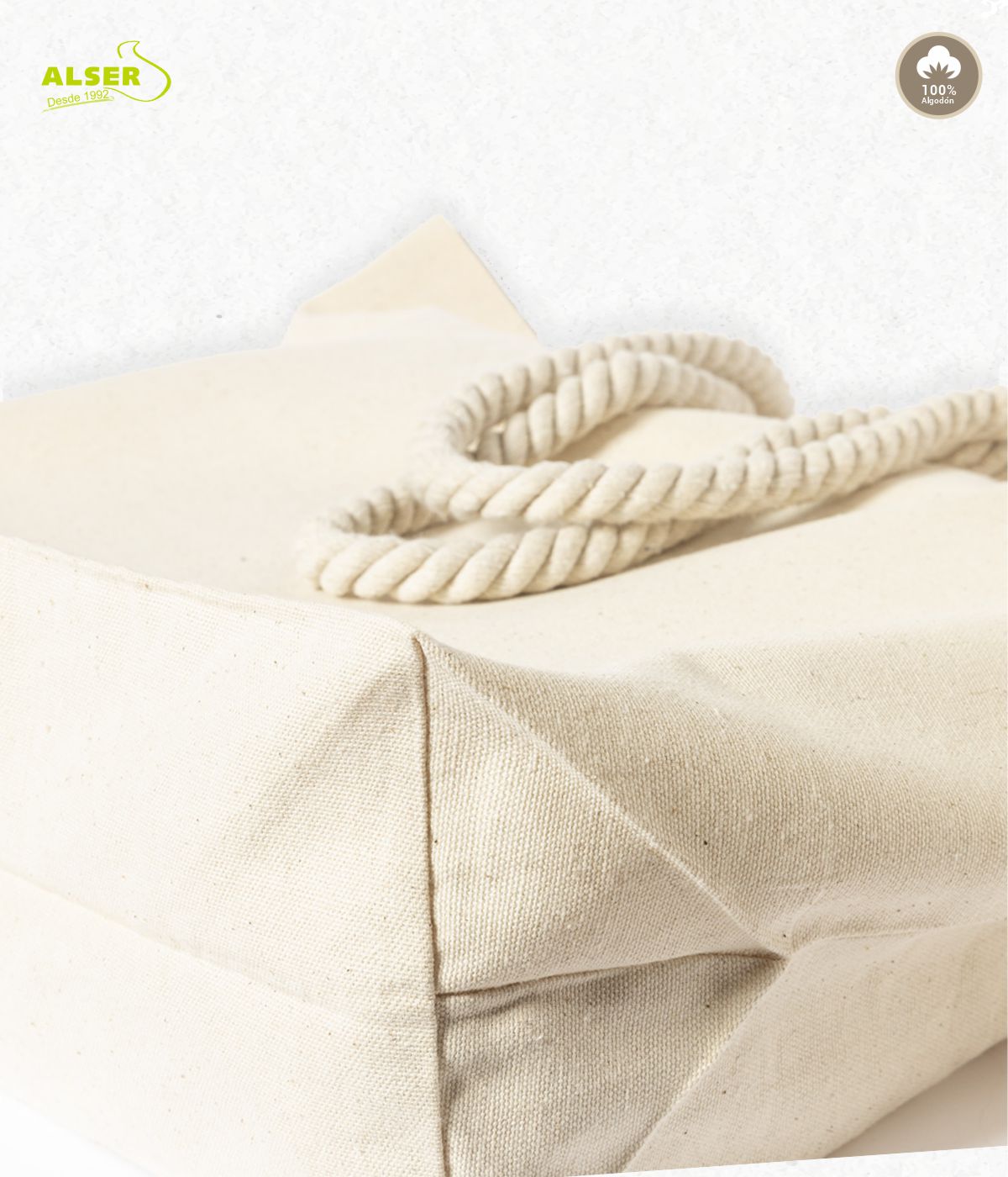 Su diseño, claro. Pero también sus materiales, sus acabados cosidos, su comodidad al llevarla (gracias a esas asas tipo cordón), y la versatilidad para adaptarse a diferentes tipos de promociones. Se imprime genial, se ve aún mejor, y lo aguanta todo. Y lo mejor: cada vez que alguien la usa, tu marca gana visibilidad real, orgánica y simpática.