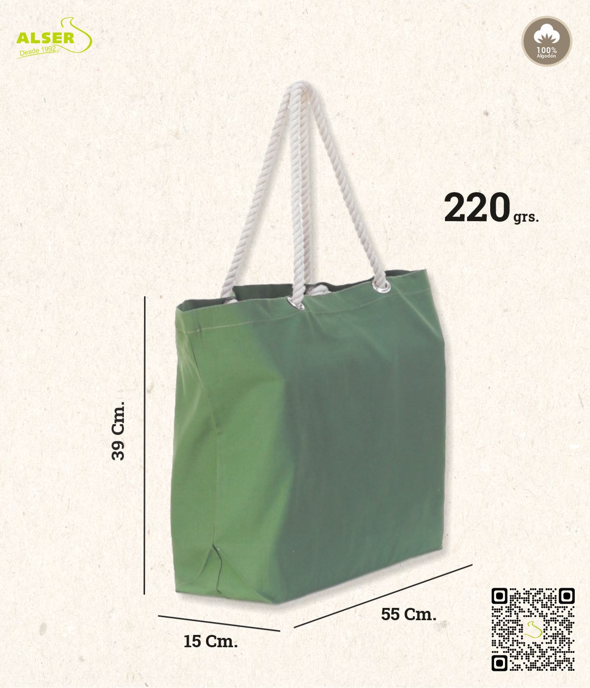 Si el verano fuera una pasarela, esta bolsa de verano sería la estrella del desfile. Porque no solo es bonita, resistente y con estilazoo, sino que también se convierte en la mejor embajadora de tu marca en playas, paseos marítimos y fiestas al aire libre. Confeccionada en algodón 100% de 220g/m², esta bolsa tela playa está diseñada para resistir sol, arena y ritmo playero sin despeinarse.