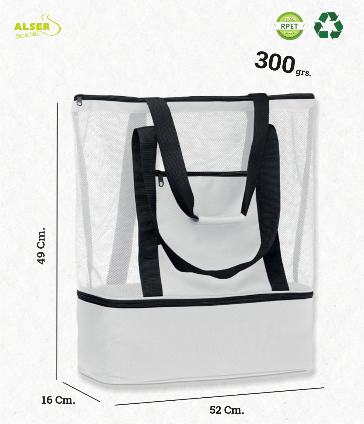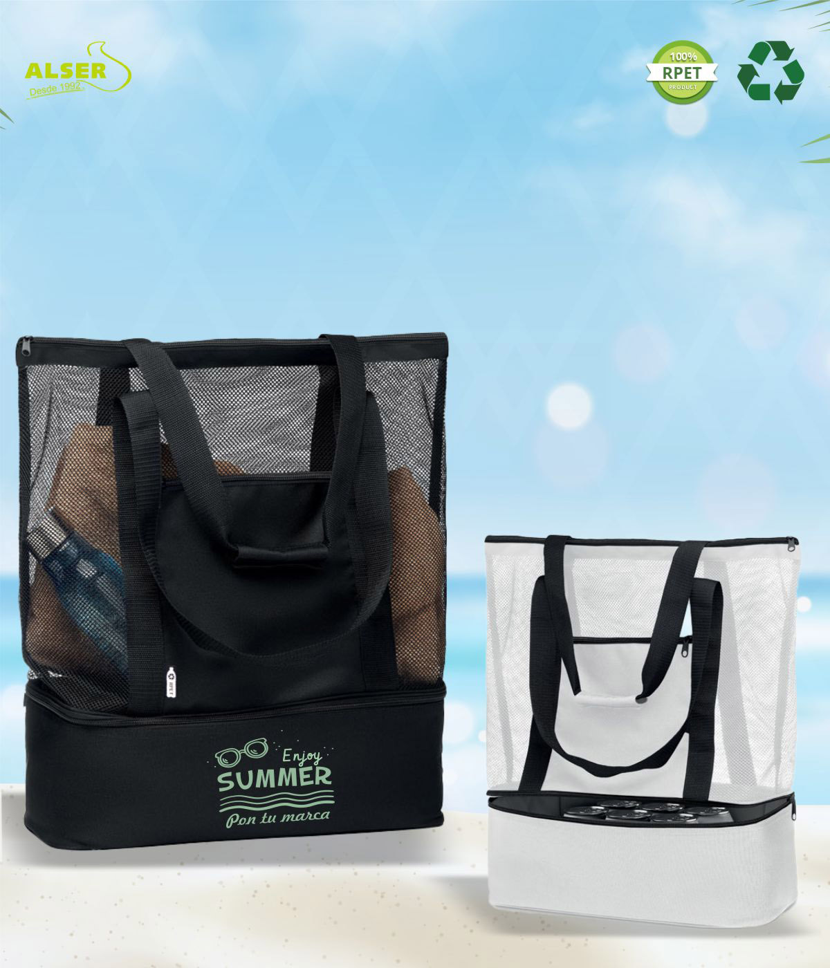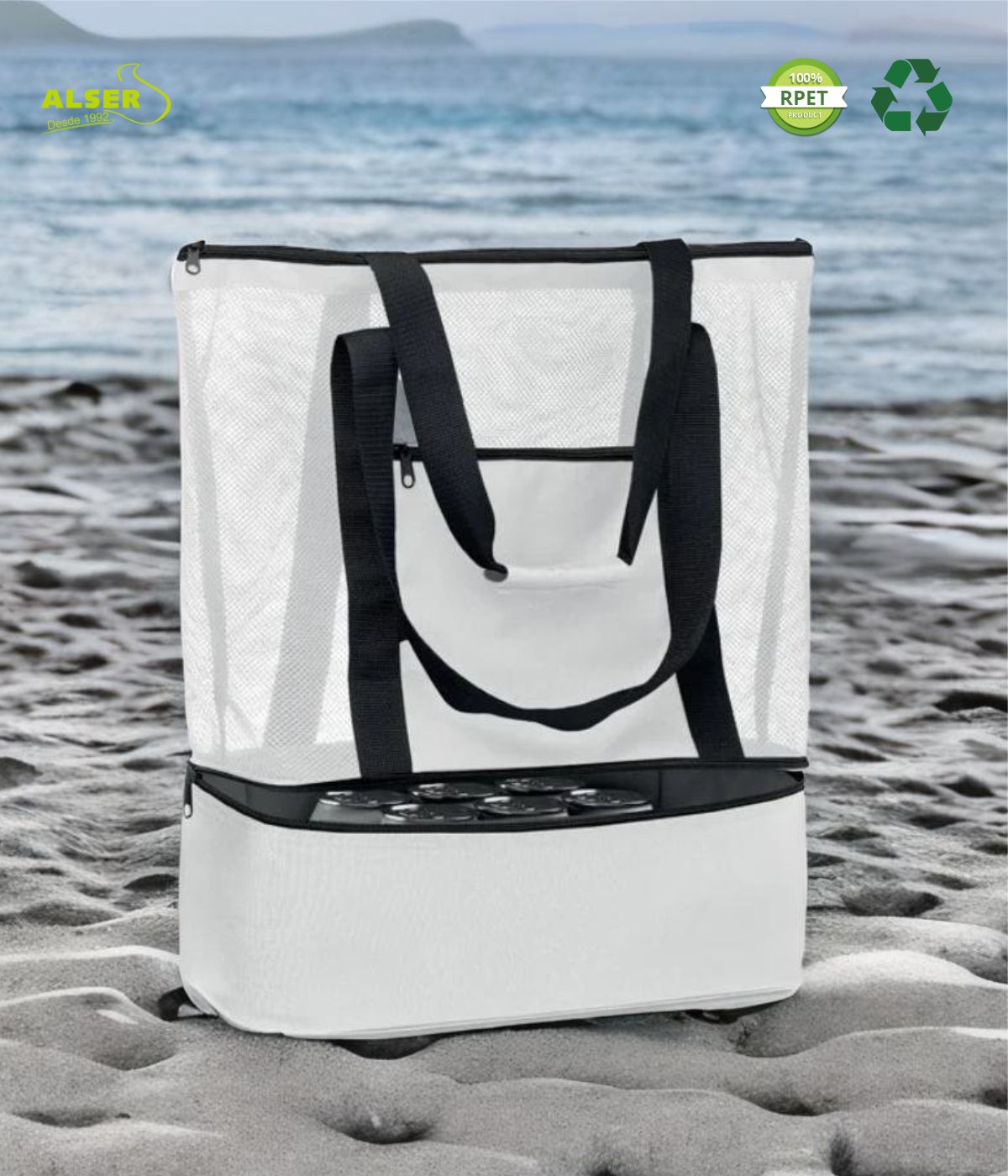 Estilo y sostenibilidad en una bolsa de playa fabricada en RPET