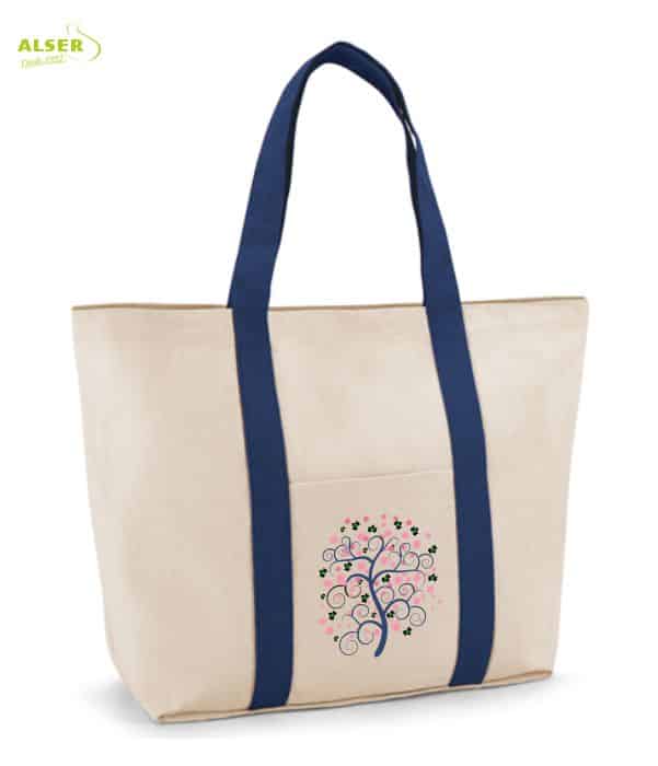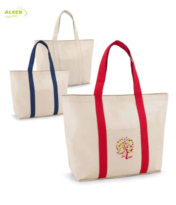 Bolsa playa de lona bicolor que fidelizará a sus clientes y será un gran regalo para trabajadores.