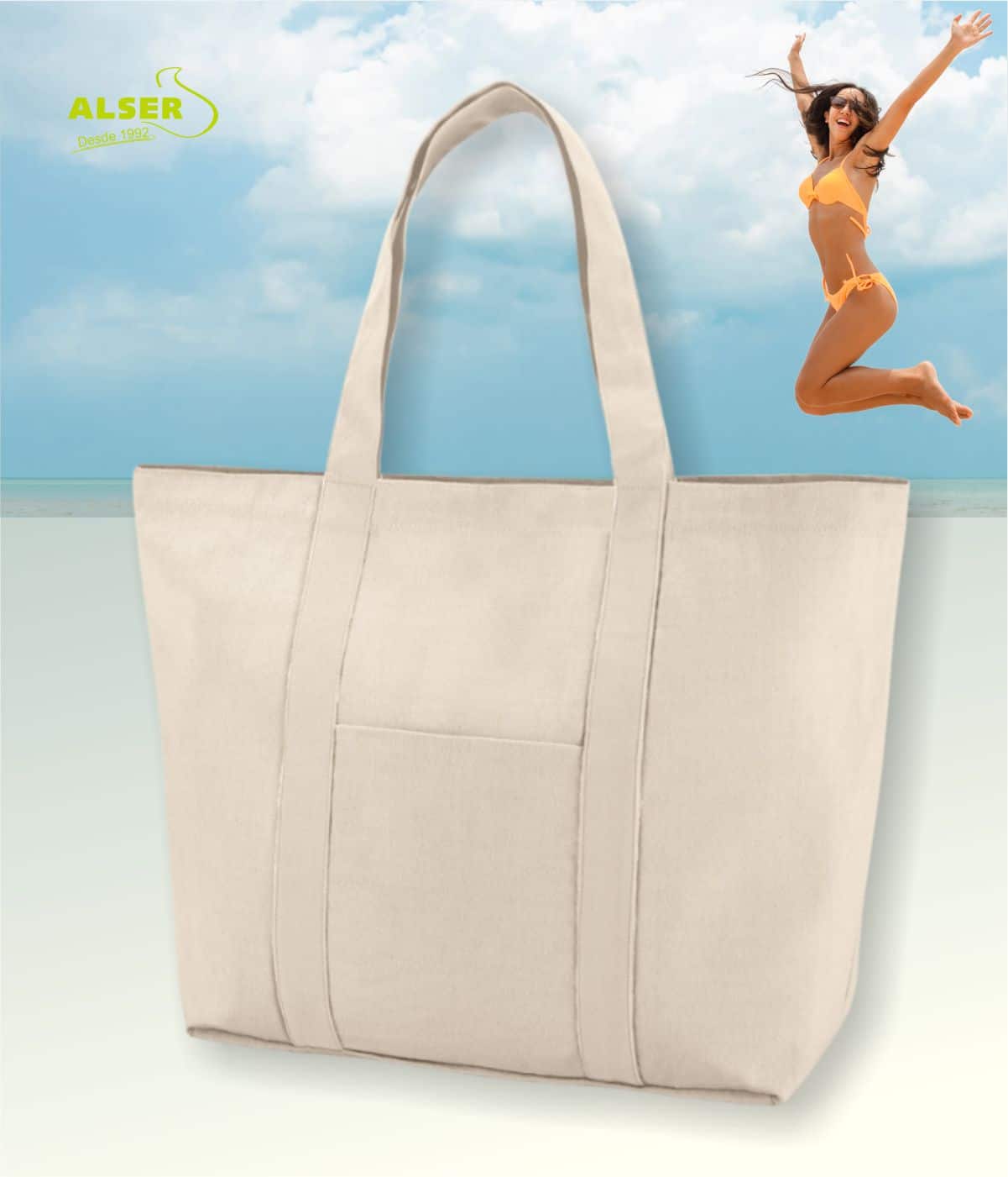 Bolsa de tela para playa, grande, cómoda y moderna.