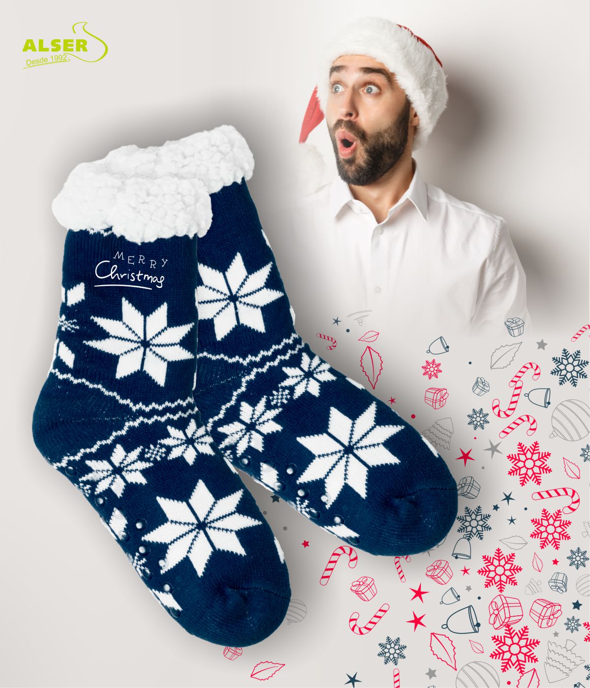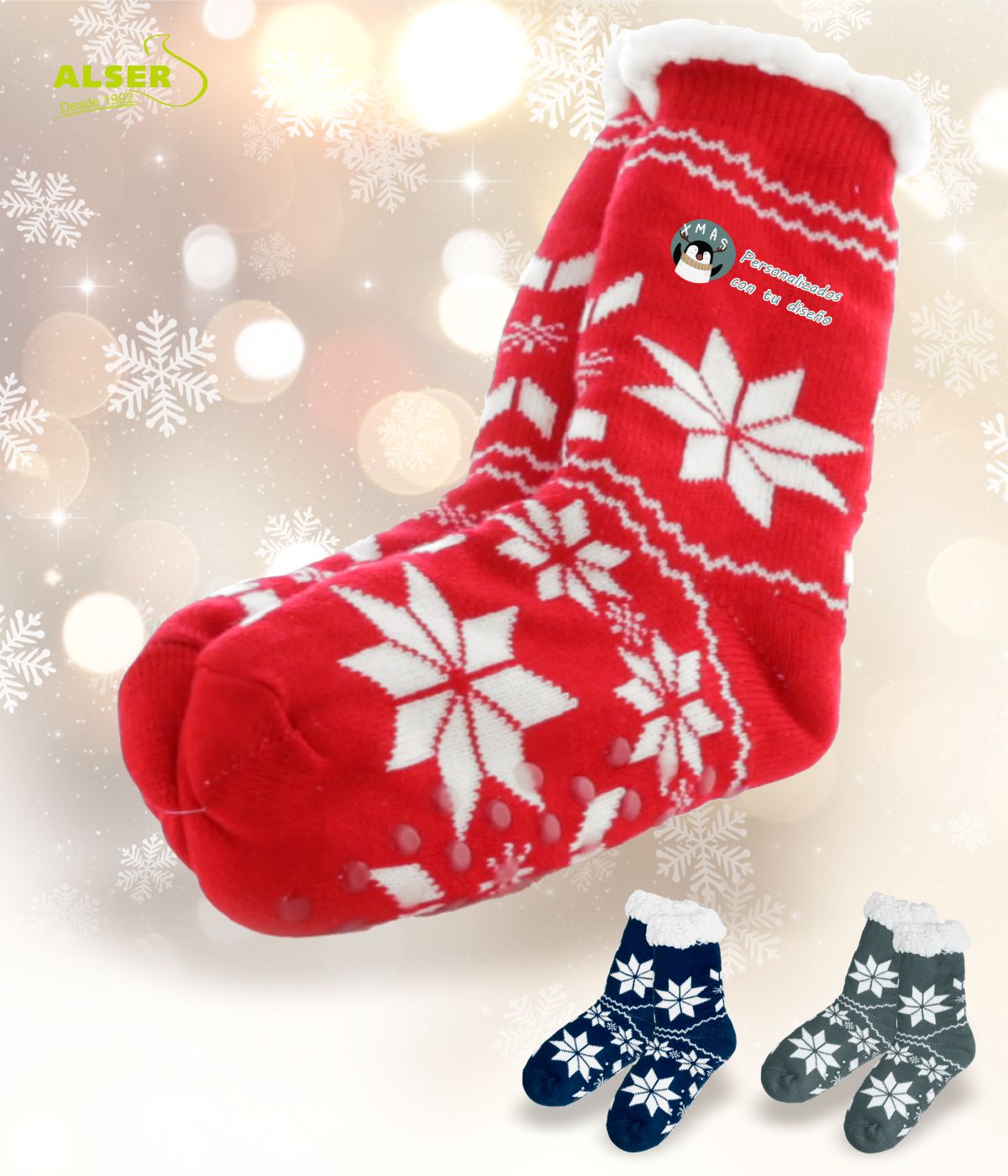 Porque son como un abrazo para los pies, porque su diseño antideslizante nos deja disfrutar sin preocupaciones y porque cada vez que alguien los use, tu marca estará ahí, recordándoles esos momentos acogedores que hacen la Navidad tan especial. 🎅