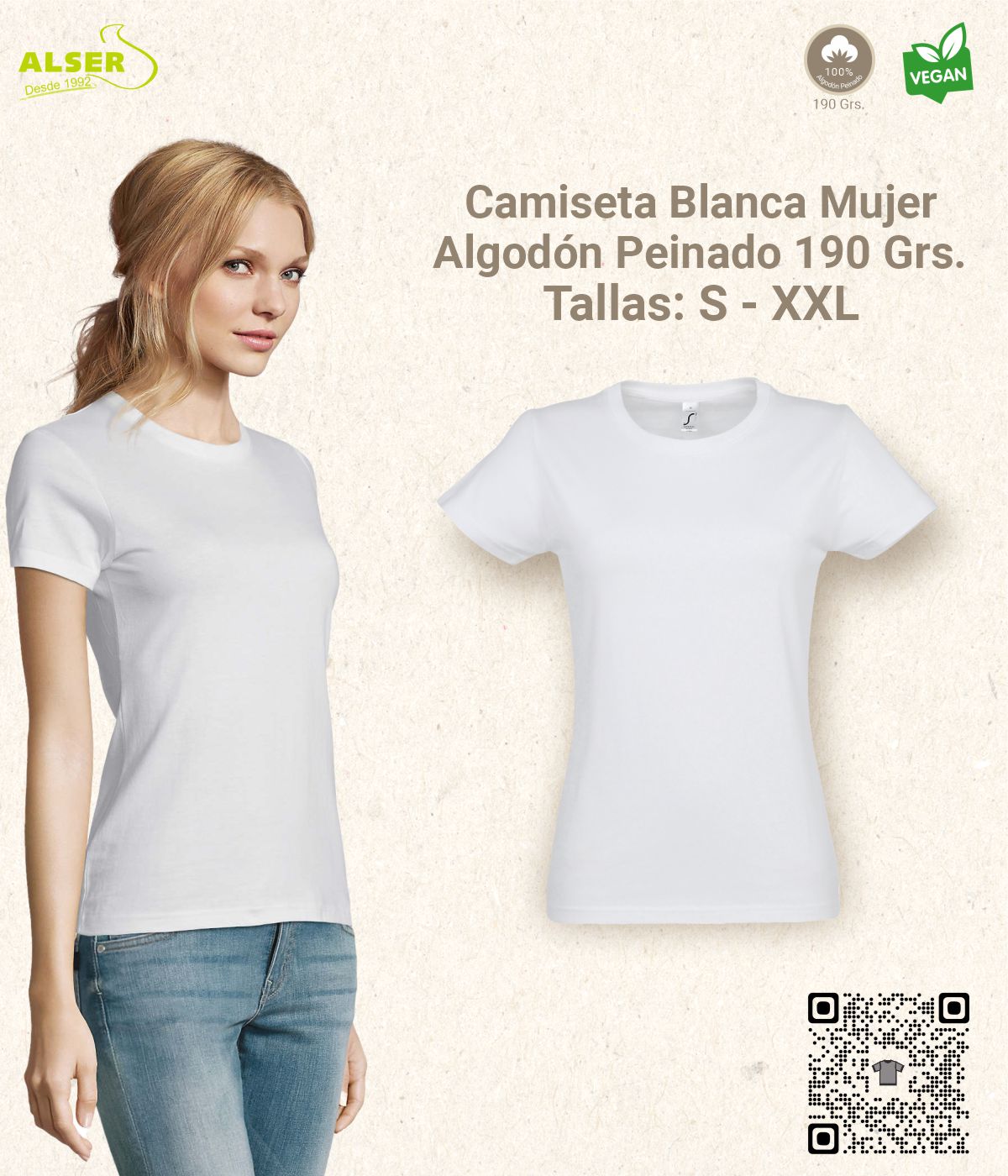 CAMISETA BLANCA ALGODÓN MUJER PARA tu publicidad