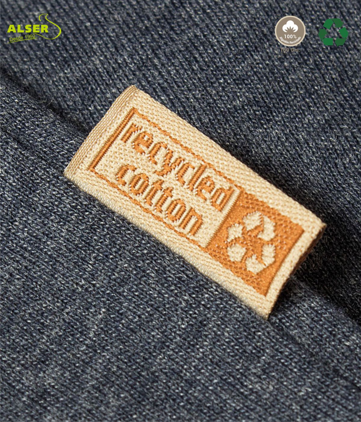 Está fabricada con de algodón 100% reciclado, siendo una producción mucho más sostenible para el planeta, al necesitar menos energía, menos agua y utilizar productos ya desechados.