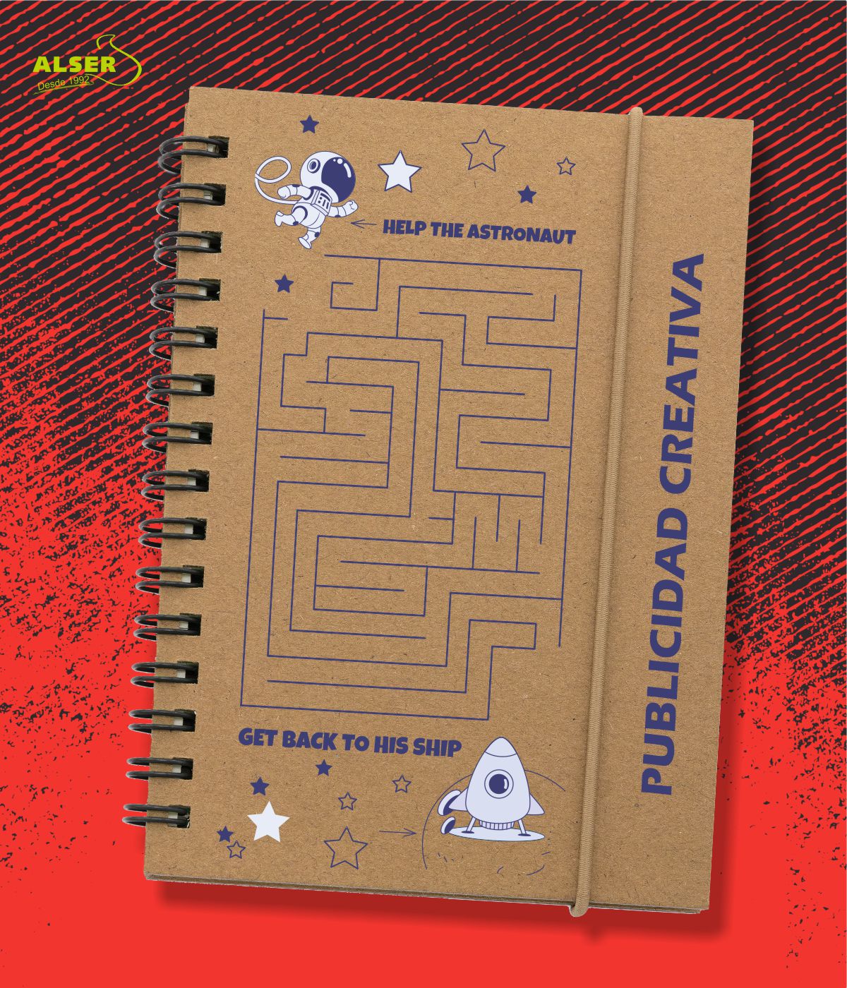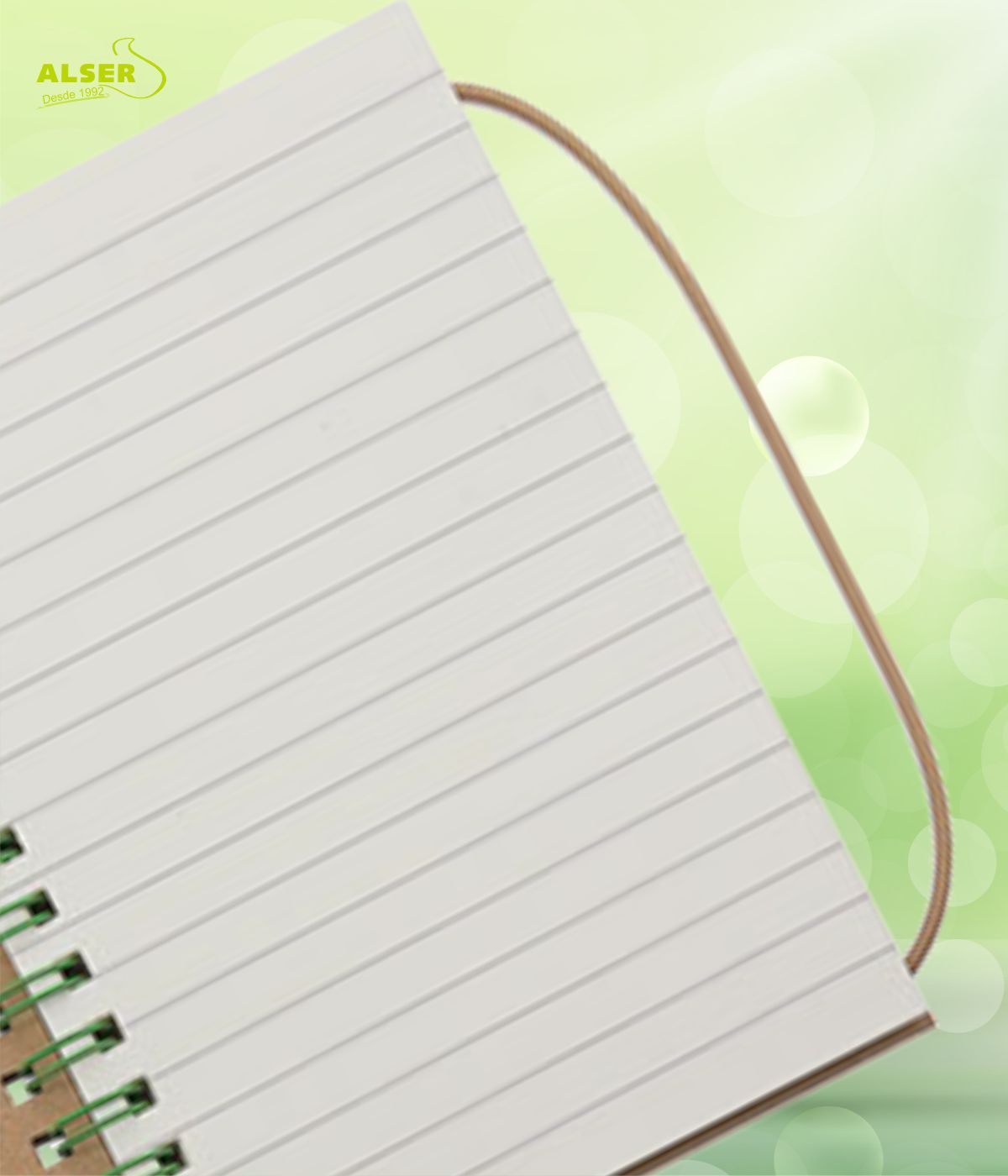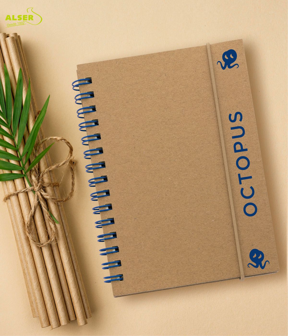Tiene tapas de cartón reciclado con textura natural y ese rollo ecológico que enamora a primera vista. El cuaderno espiral tapa dura está pensado para promociones con cabeza, con alma verde y con mucho estilo.
