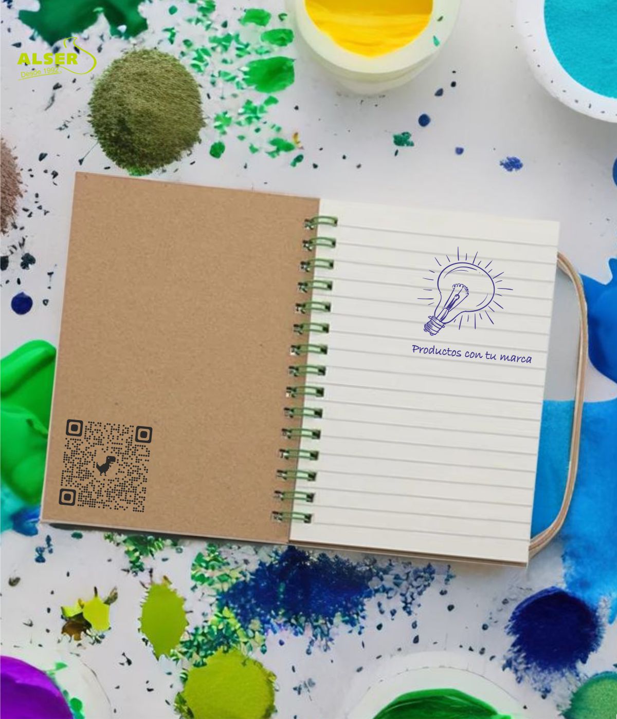 Cuenta con 70 hojas lineadas tamaño A6, lo justo para anotar ideas, dibujar garabatos creativos o hacer la lista del súper (sí, también sirve). Su goma vertical mantiene todo bien cerrado, porque hasta las ideas necesitan contención. Y ojo: puedes personalizarlo por ambas caras en hasta cinco colores. ¡Dale a tu logo el protagonismo que se merece!