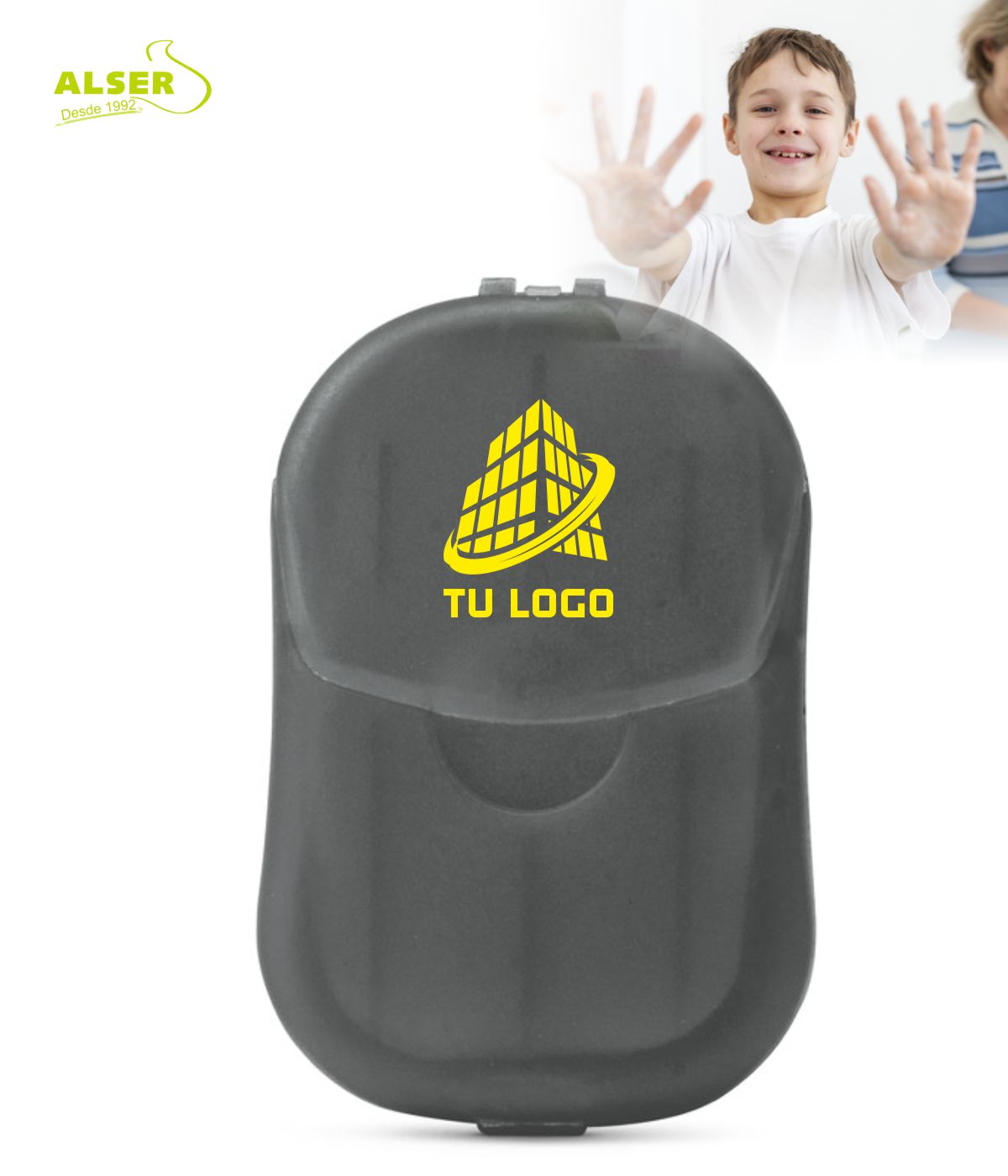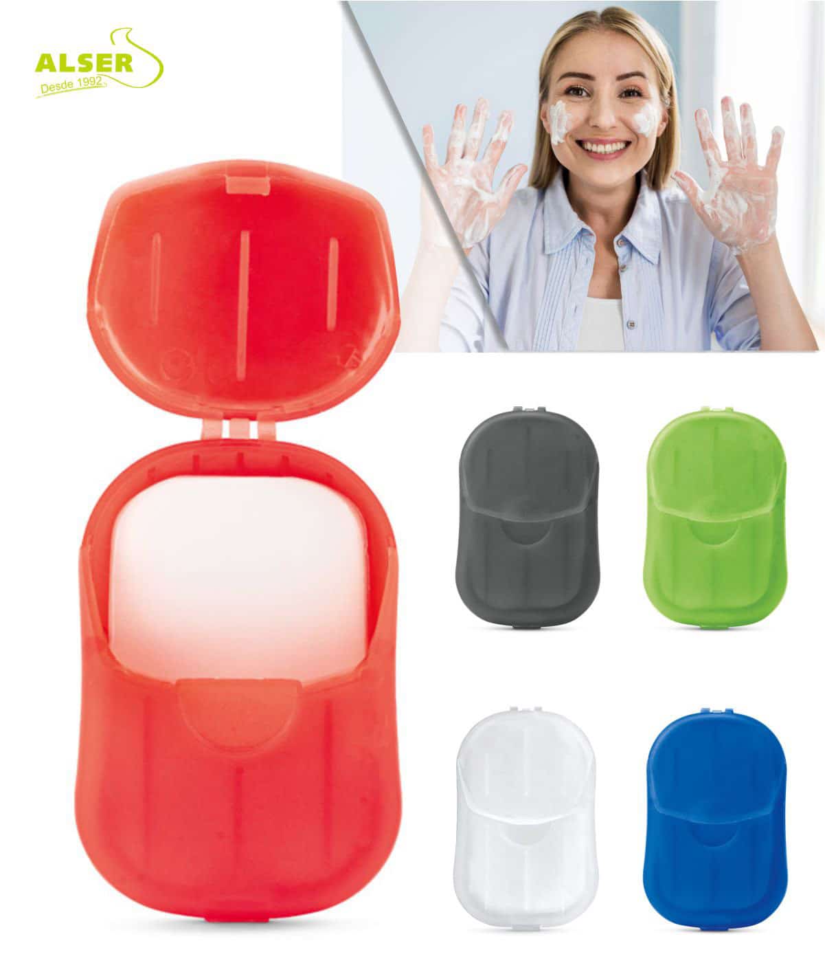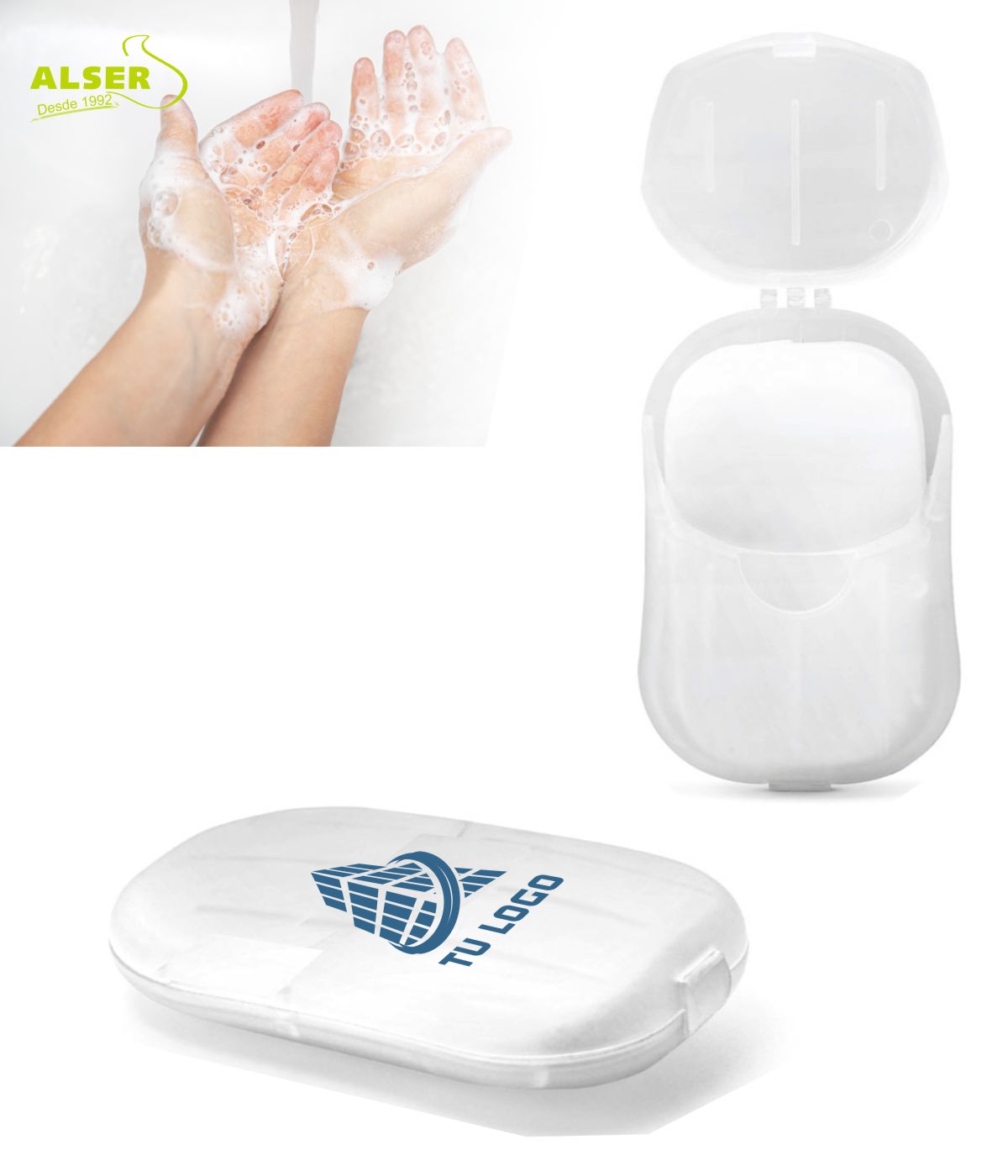 Su tamaño es pequeño por lo que se hace cómodo de llevar en un bolso, mochila o bolsillo y en su interior tienes 20 láminas de jabón.