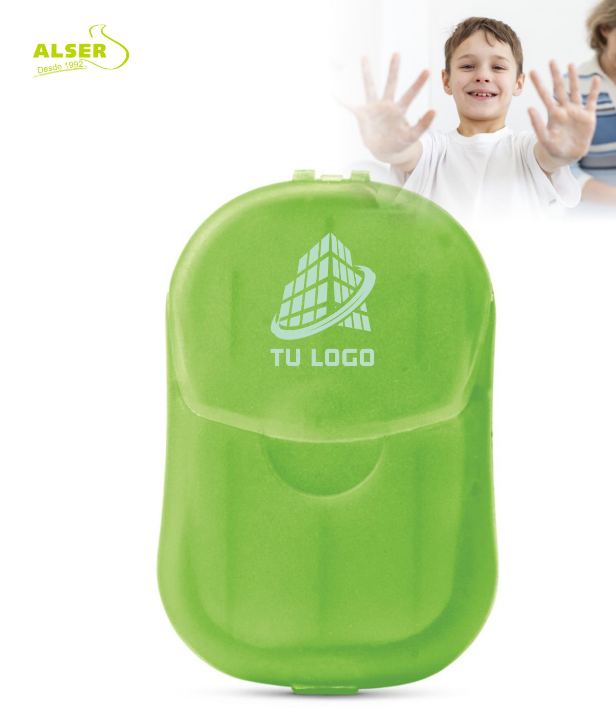 Una solución cómoda y fácil son los estuches con hojas de jabón ya que ofrece la tranquilidad de que en cualquier momento vas a poder limpiar tus manos y las de las personas que estén contigo.