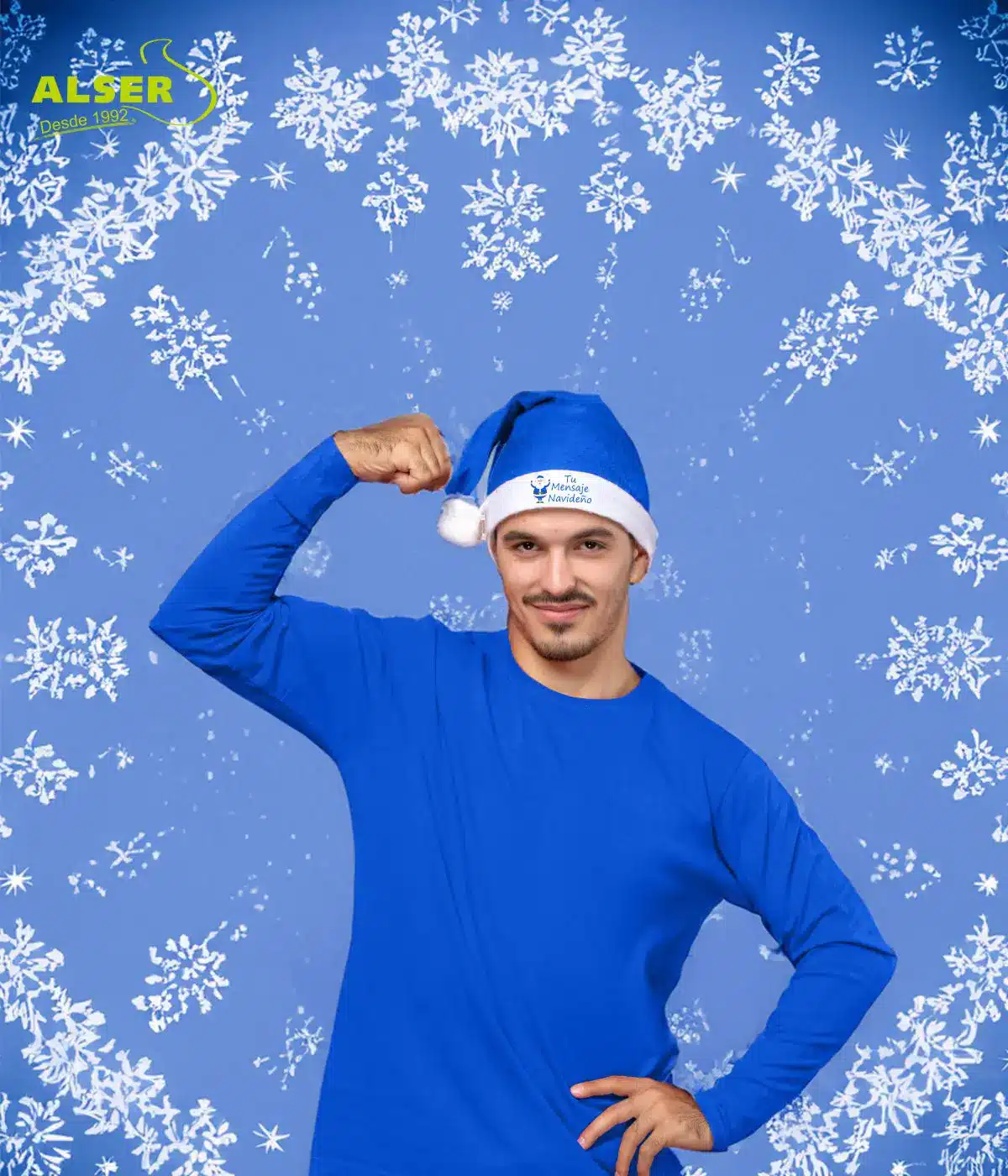El espíritu navideño tiene muchos colores, y el Gorro de Papá Noel se adapta a tu celebración, sin importar si eres un apasionado del clásico rojo o un entusiasta del azul festivo.