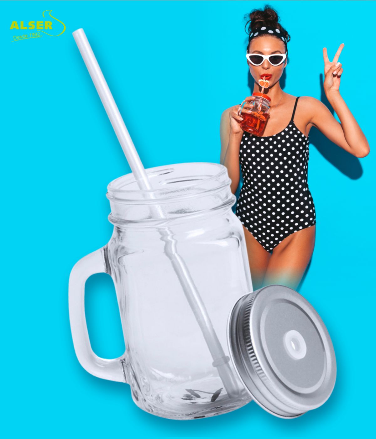 Jarra de cristal con tapa y pajita: una opción ganadora para promociones