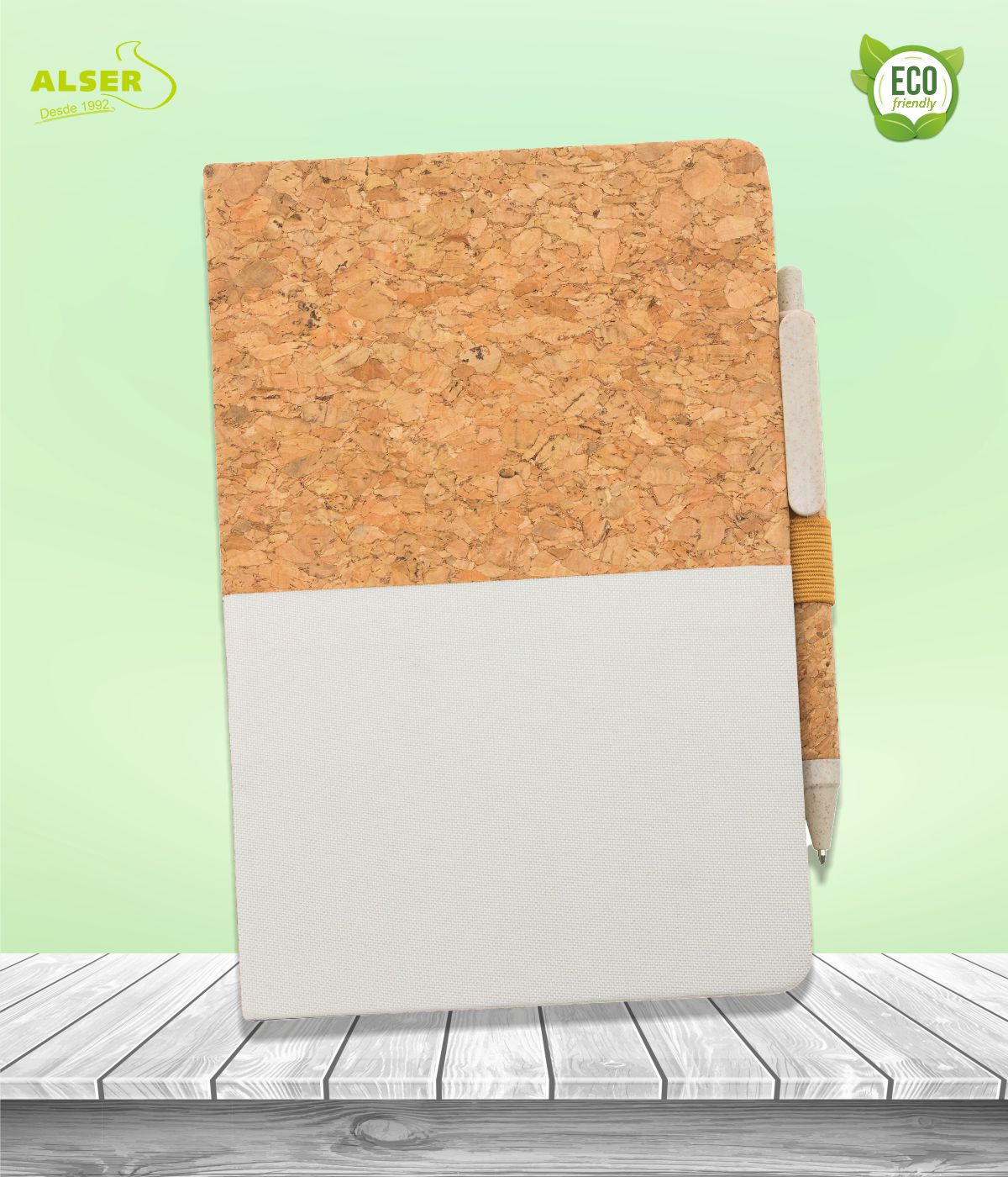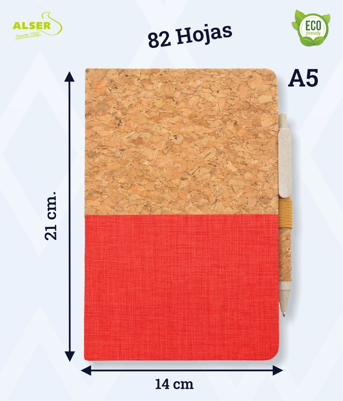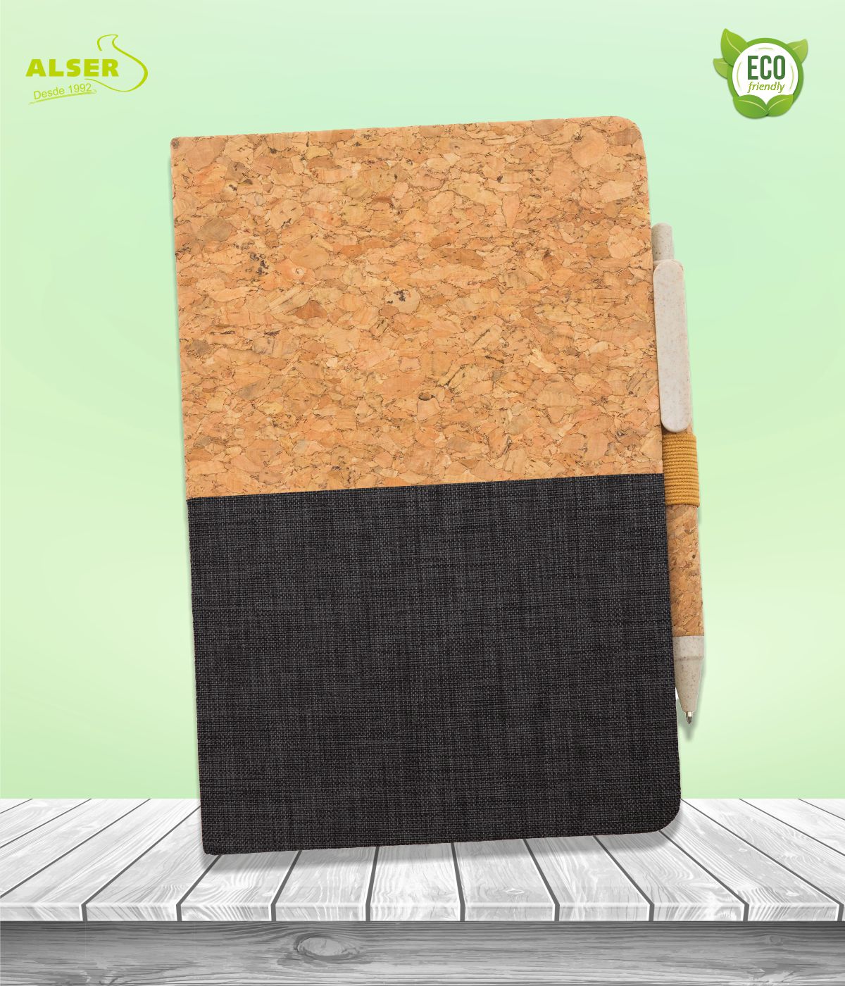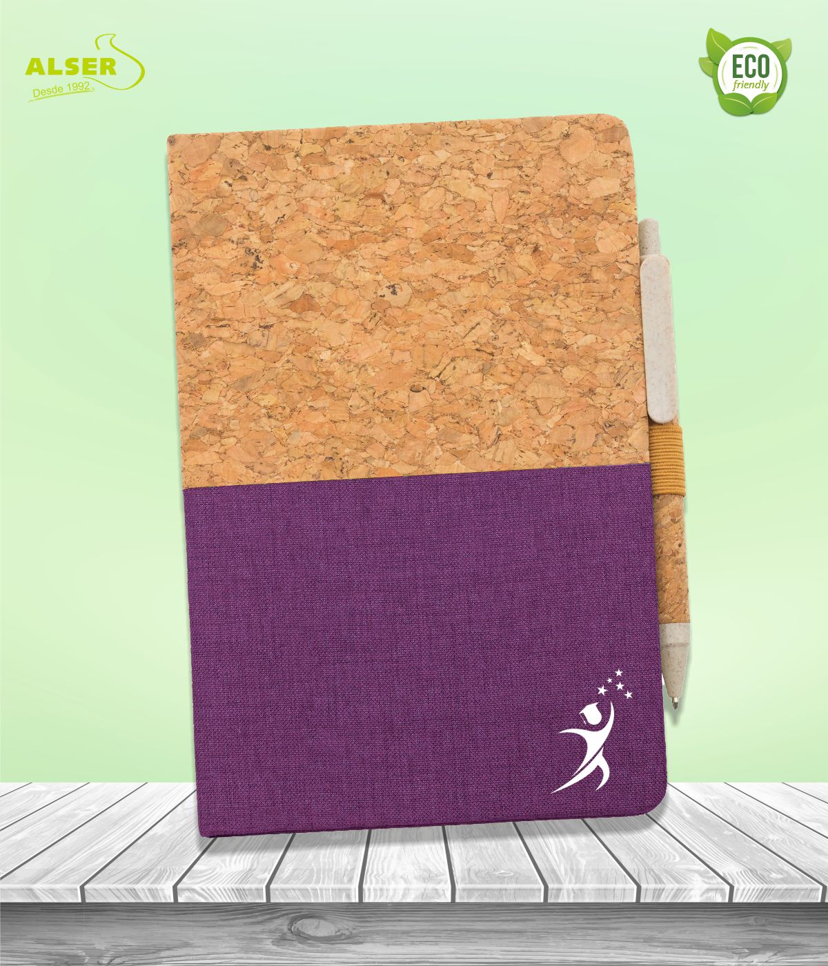 Las tapas de corcho y lino de esta libreta, le dan un toque original y colorido para poner tu publicidad.