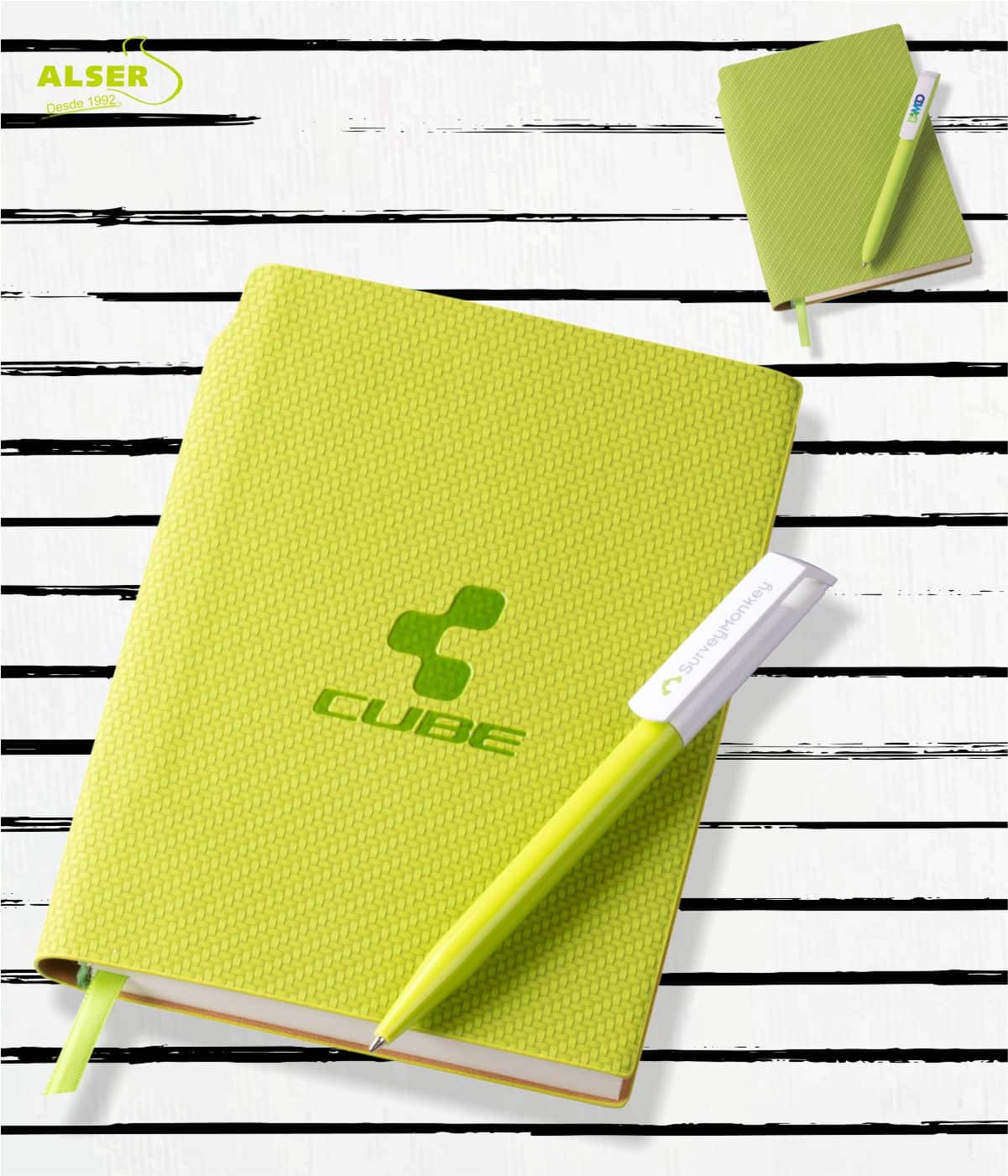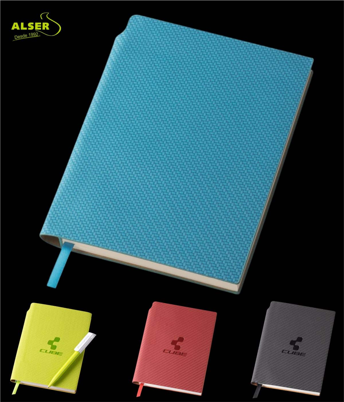 Sus colores son vibrantes y originales y personalizada en termograbado con tu marca queda una libreta muy elegante.