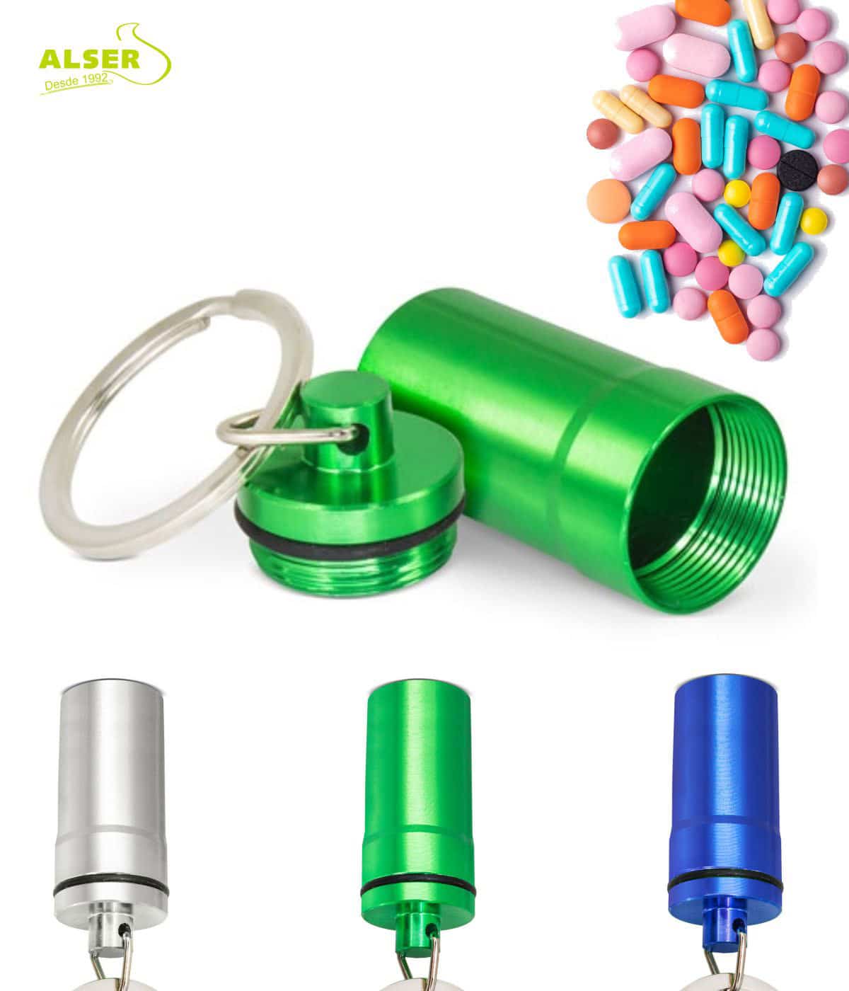 No es un llavero común, ni un pastillero olvidable en el fondo del bolso. Es un pastillero llavero de aluminio, diseñado para llevar tus pastillas, vitaminas o caramelos siempre contigo… ¡y tus llaves también! Suena práctico. Lo es aún más.