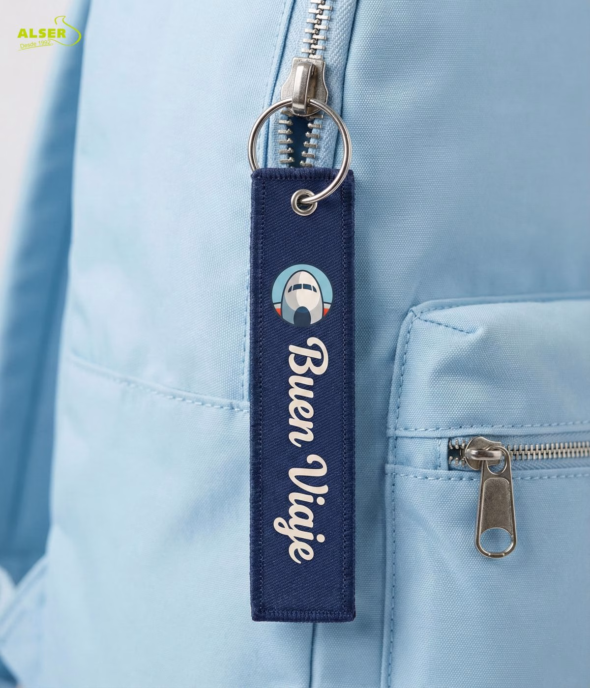 Su origen viene directamente de las pistas de despegue. En aeronáutica, el mensaje “Remove Before Flight” sirve para recordar que hay que retirar protecciones y bloqueos antes de volar. Básicamente, un aviso serio convertido con los años en icono. Y como todo icono, acabó saliendo del hangar para colarse en llaves, mochilas y maletas.