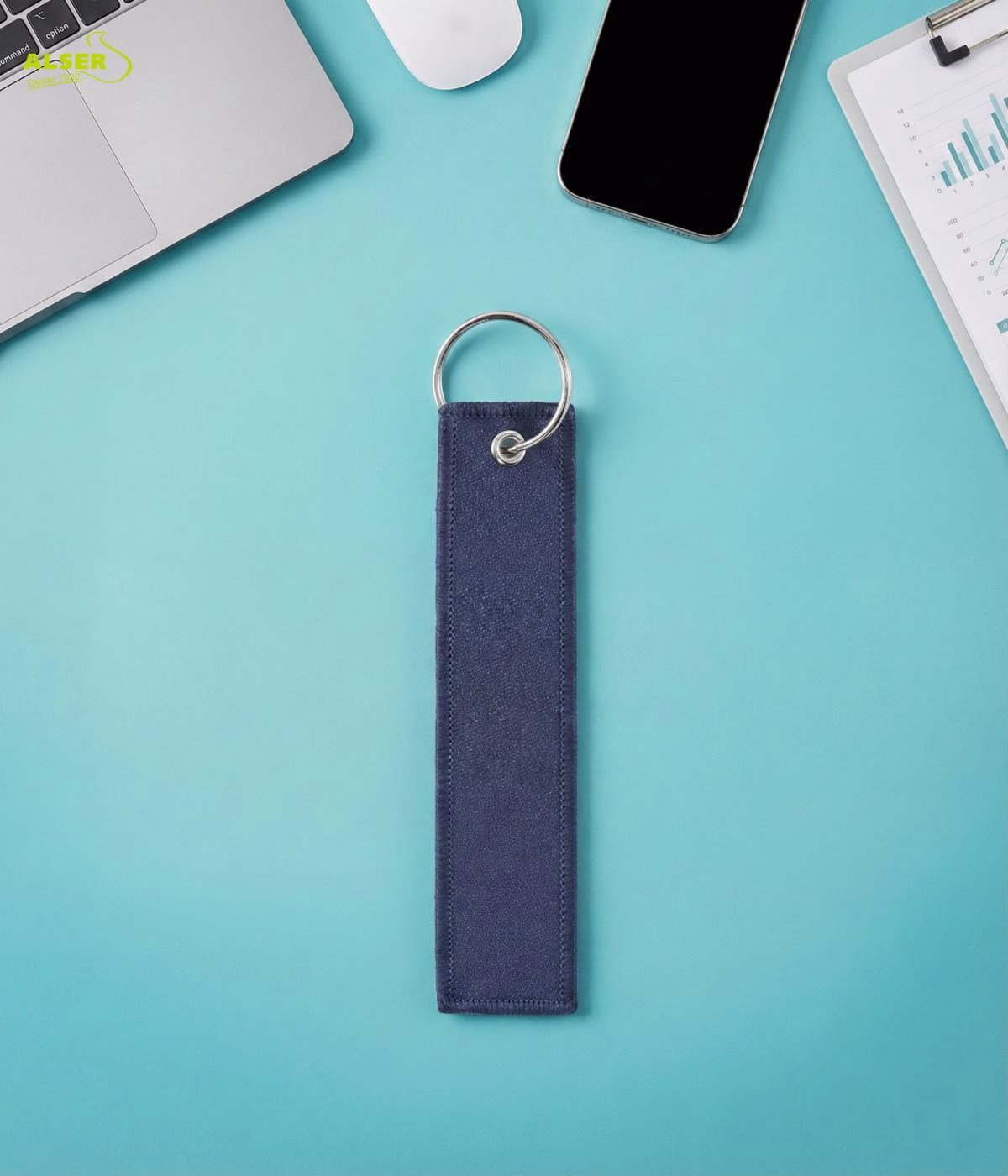 Este llavero de tela poliéster en transfer se puede personalizar por ambas caras, ya sea en serigrafía a un color o en transfer a todo color. El resultado es un logo limpio, bien integrado y con muchísima visibilidad en un objeto que se usa a diario.