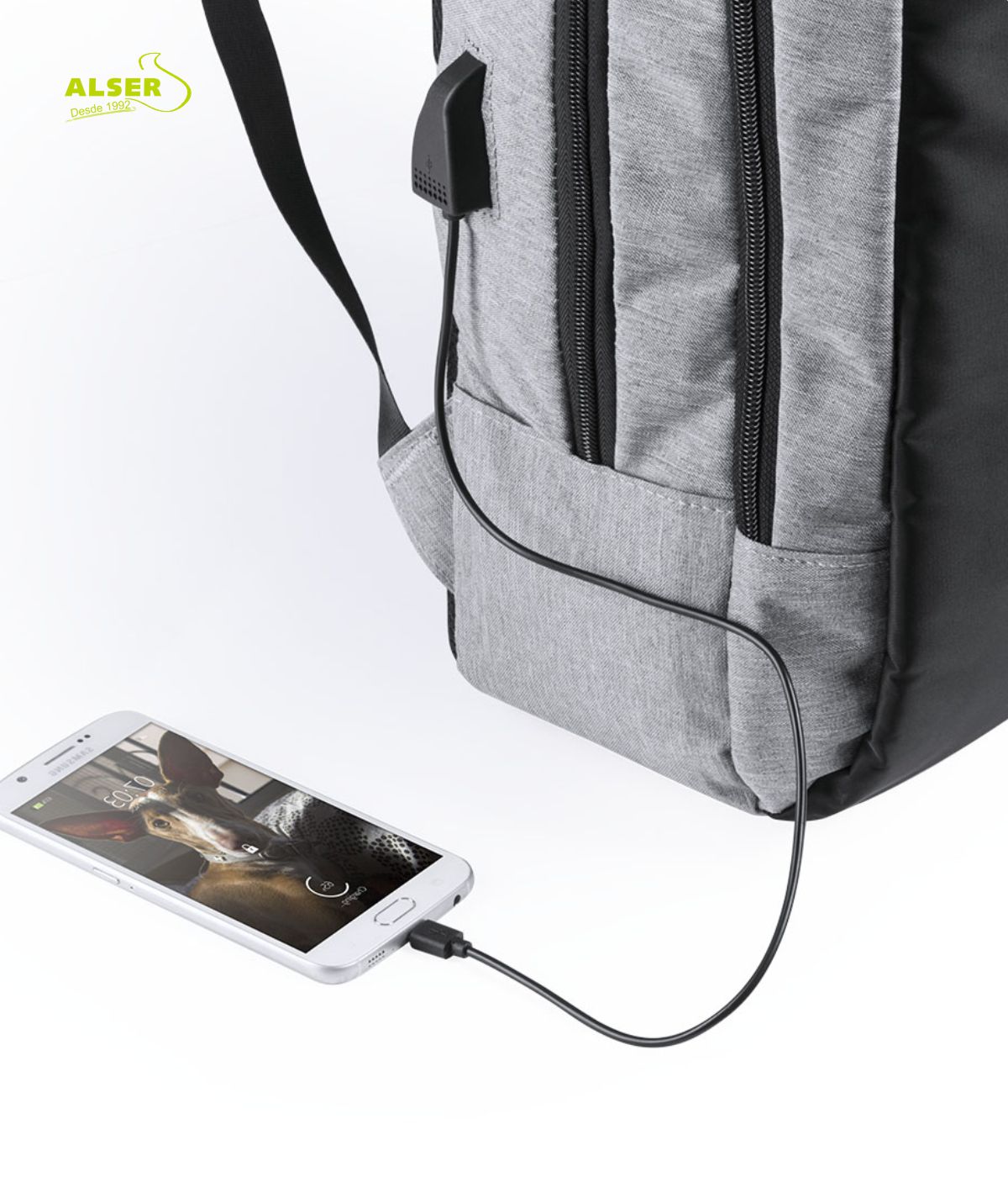 La seguridad de su cierre con combinación, el bolsillo en la espalda y el puerto USB, que la convierten en el regalo ideal para quienes necesitan llevar sus pertenencias y su marca a todos lados.