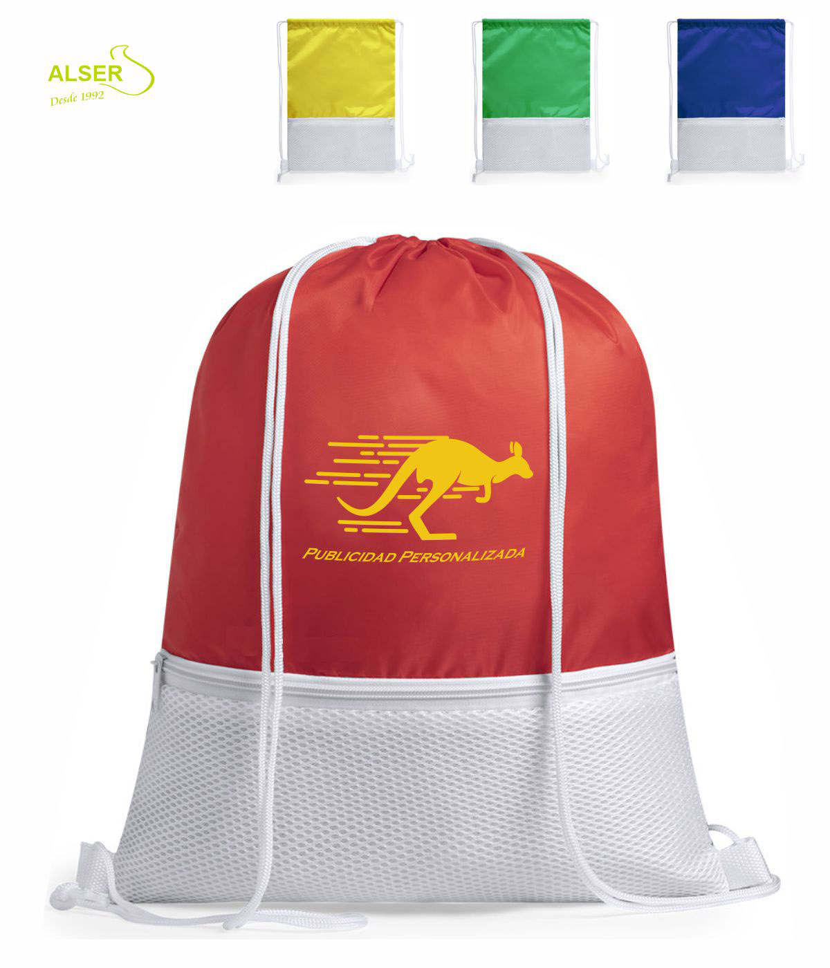 • Puedes poner tu publicidad en esta mochila a un color en serigrafía