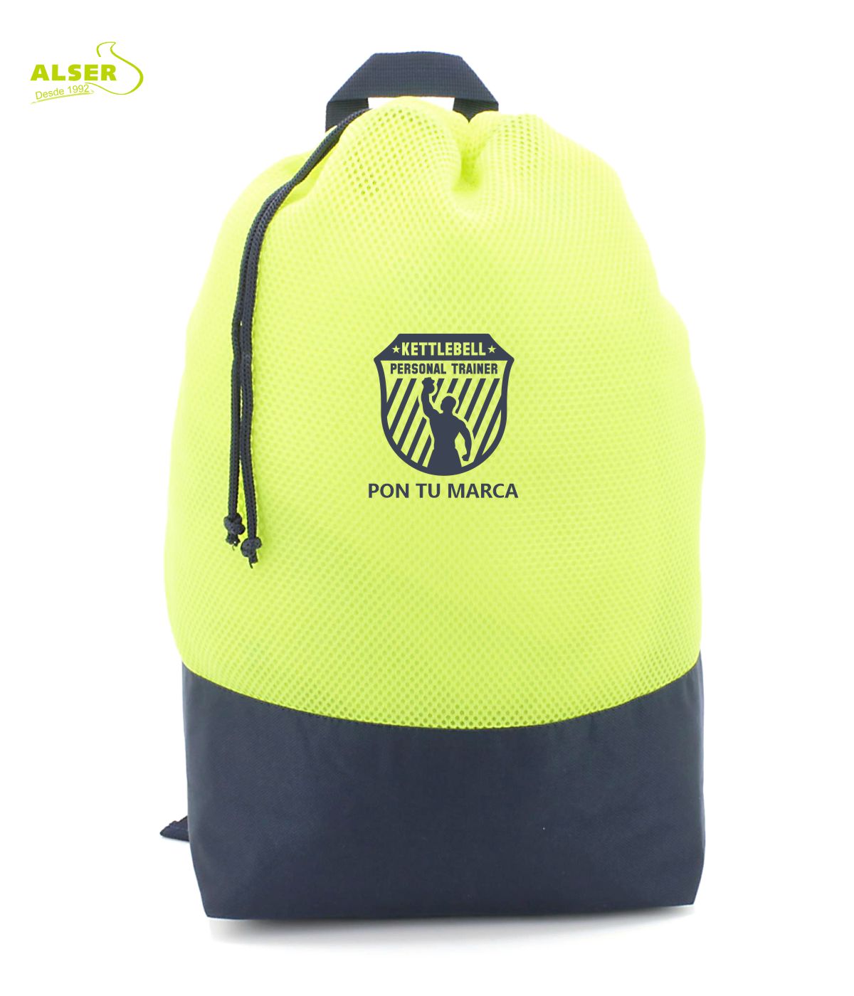 Disponible en colores como amarillo fluorescente, azul marino, naranja vibrante y negro clásico, esta mochila no pasa desapercibida. ¿Y lo mejor? Las empresas pueden personalizarla en serigrafía, con un logotipo visible y llamativo que acompaña a cada miembro o cliente del gimnasio, equipo o club.