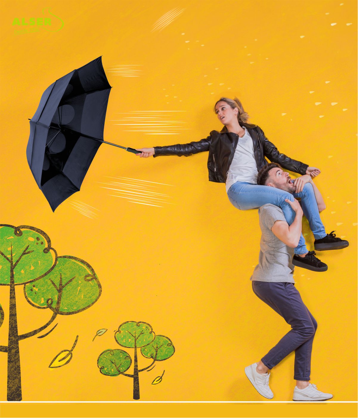 La lluvia y el viento pueden convertir cualquier día en una batalla contra los elementos. Pero con el paraguas antiviento, estarás preparado para enfrentar incluso las tormentas más desafiantes.
