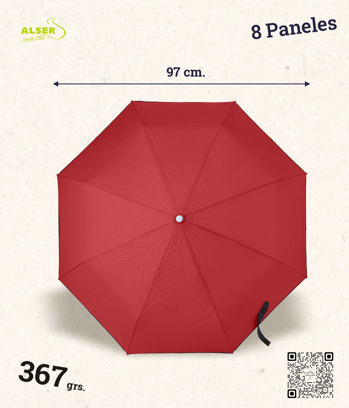 Porque es de esos regalos que salvan el día y se usan de verdad. Me encanta que con un clic se abra y se cierre, que tenga tantos colores para jugar con la imagen de marca, y que tu logo se vea enorme mientras protege de la lluvia. Además, se guarda fácil en la mochila, así que nunca molesta. Es un producto redondo: útil, resistente y con un toque de estilo que da gusto sacar en público.