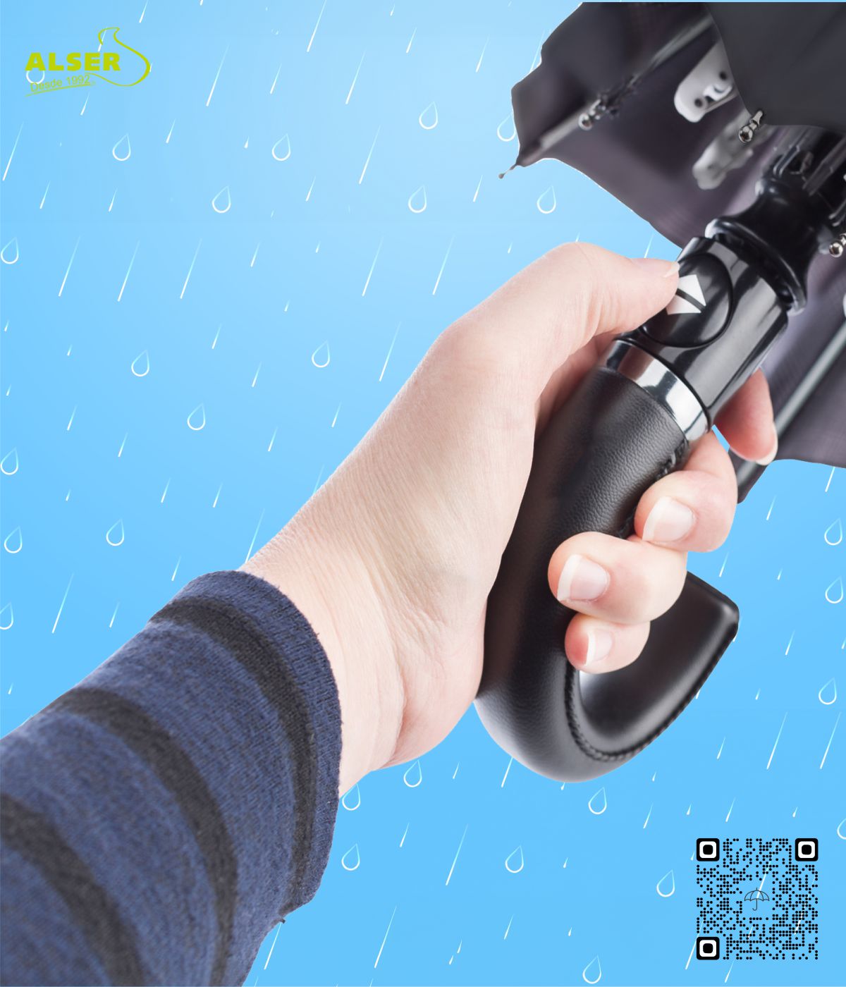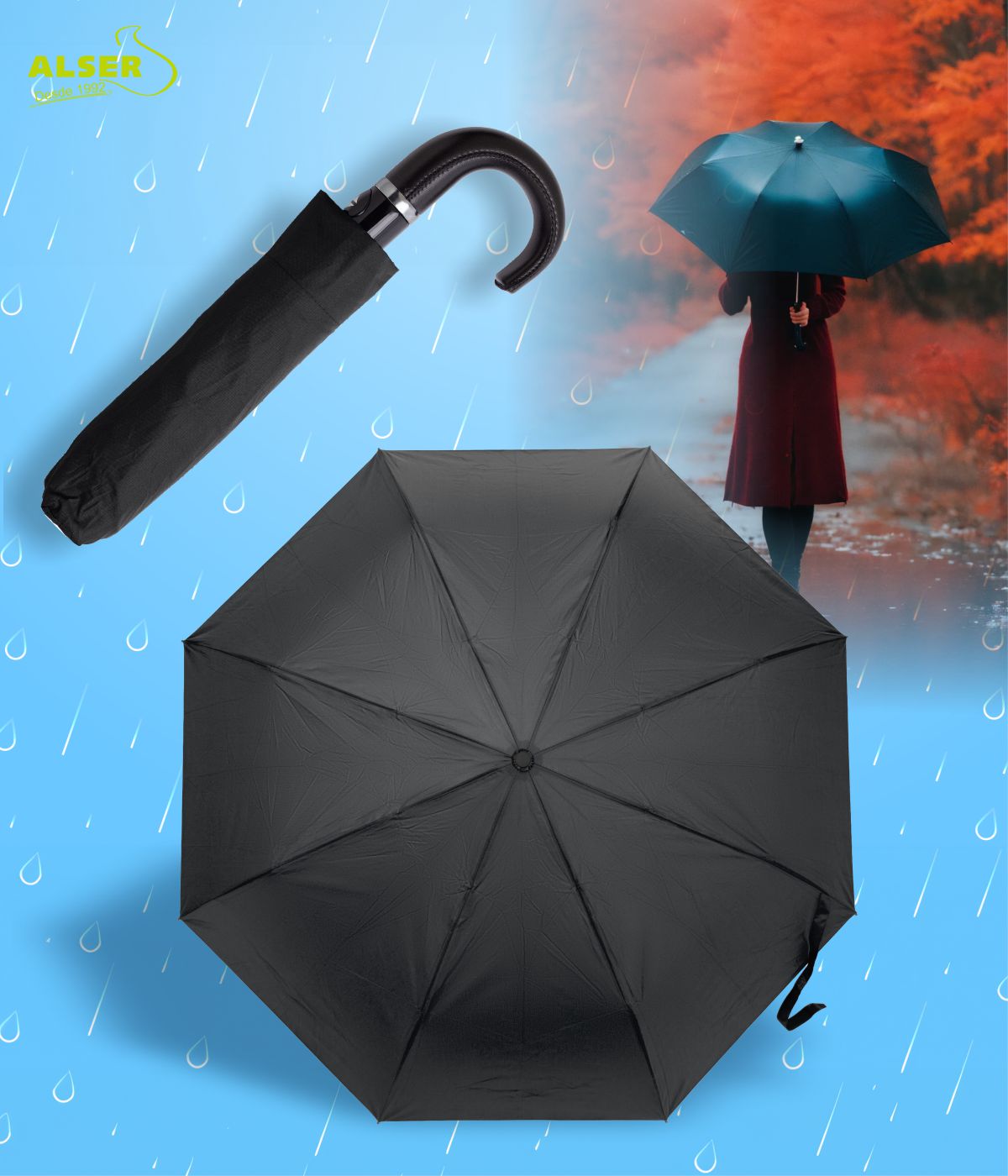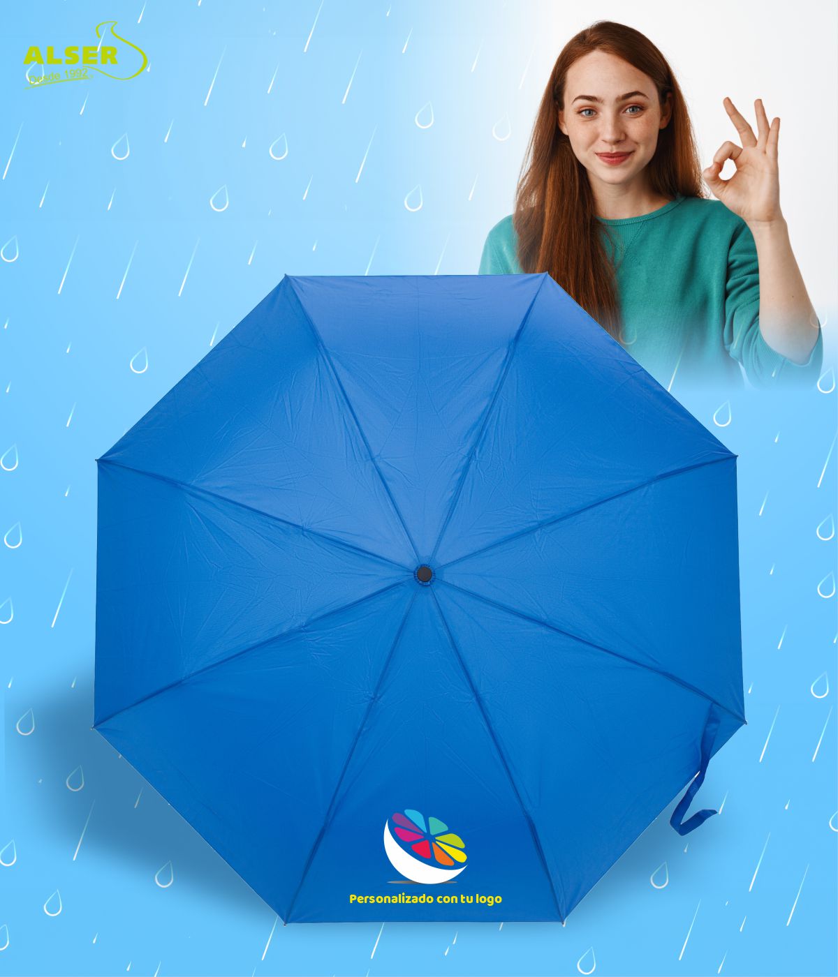 • La posibilidad de personalizarlo en el gajo del paraguas y en la funda, lo que lo convierte en un accesorio único y personal de tu negocio.