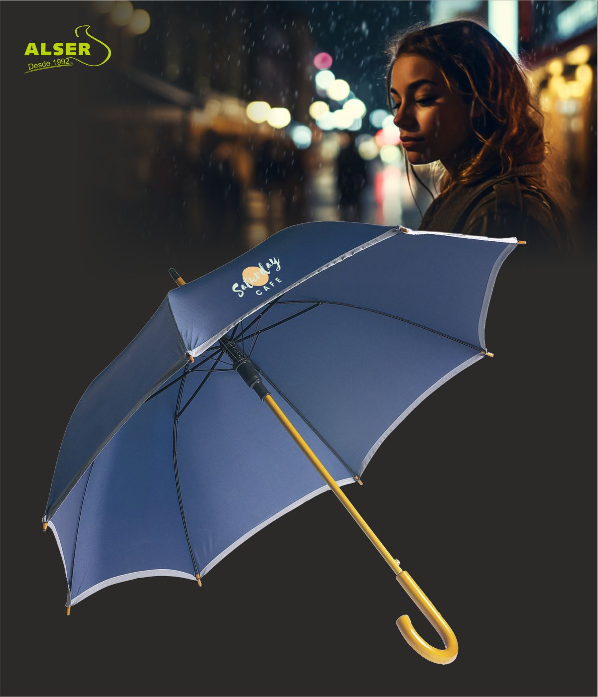La lluvia y la oscuridad no son precisamente la combinación perfecta, ¿verdad? Pero relájate, tenemos la solución para iluminar tus días grises y noches oscuras: Un Paraguas con ribete reflectante.