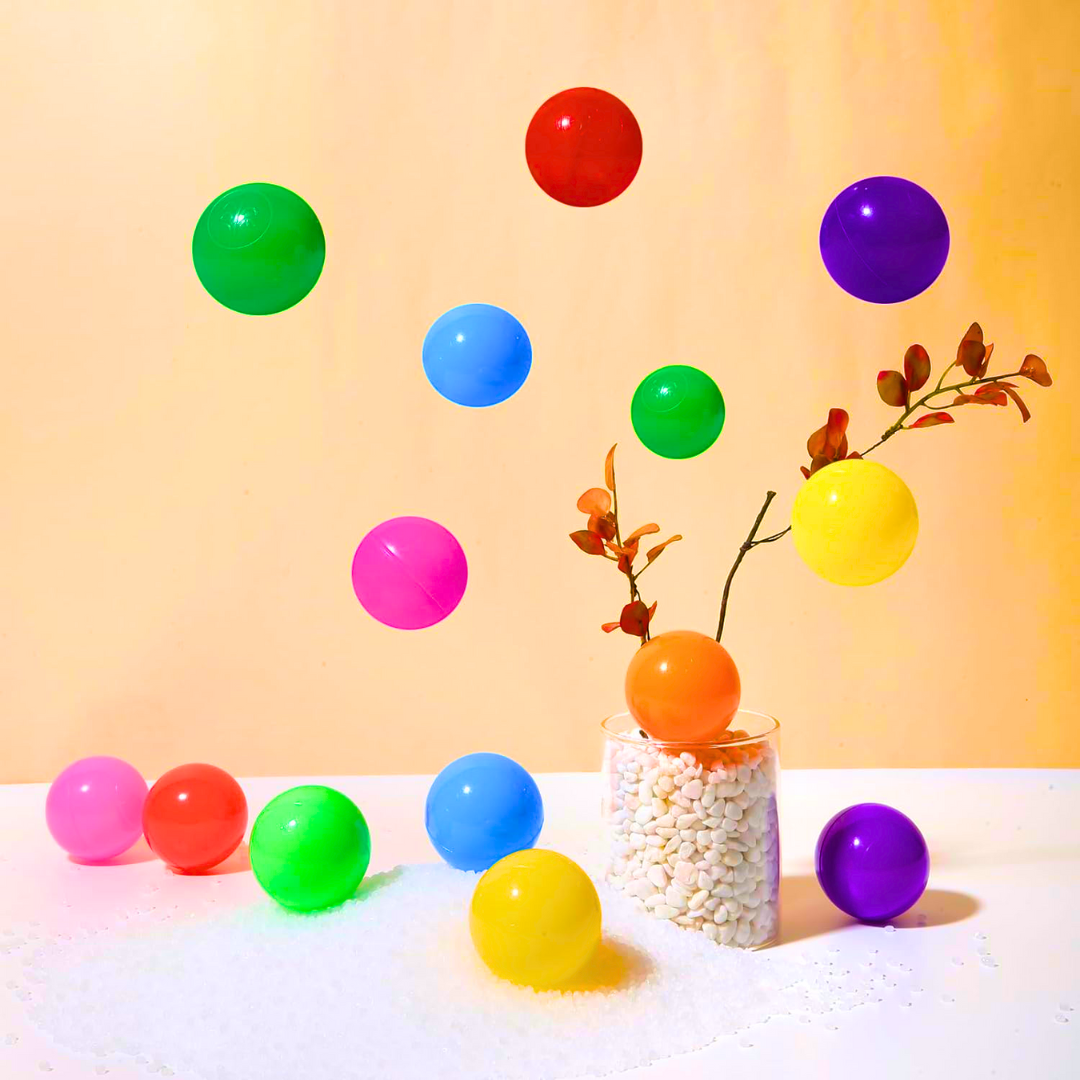 Nuestras pelotitas de plástico destacan por su resistencia a la presión, soportando más de 100 libras. Con una superficie lisa y buena elasticidad, son ideales para juegos diversos como discriminación de color, conteo y clasificación. Fabricadas con material seguro, sin ftalatos ni BPA, garantizan una protección óptima para tu bebé. Adecuadas para todas las edades, cada bola mide 2.2 pulgadas de diámetro, perfecta para juegos sensoriales y educativos.