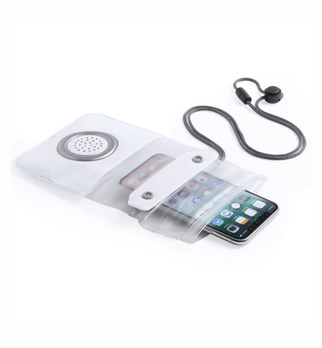 Portatodo impermeable tamaño XL. En PVC con altavoz de conexión bluetooth integrado.