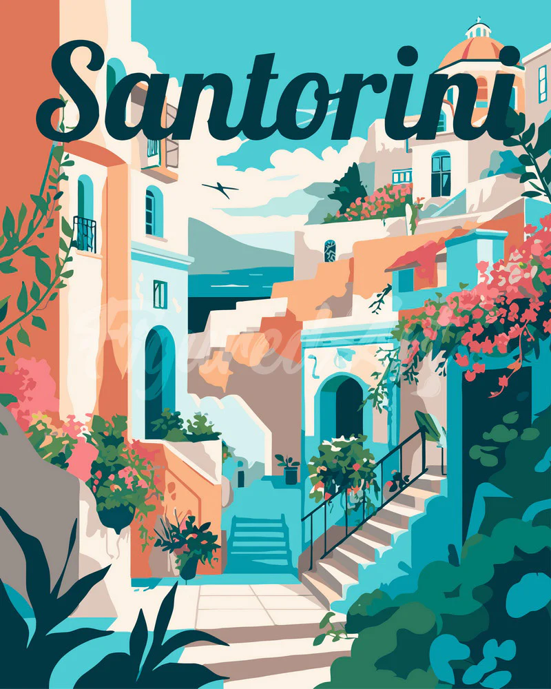 Modelo: Póster de Viaje Santorini en Flor
