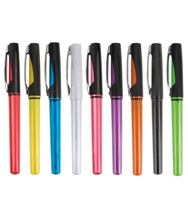 Bolígrafo Rollerball en plástico de colores brillantes muy llamativos para regalo publicitario.