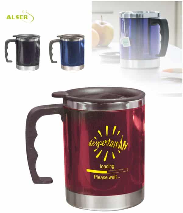 La taza de doble pared perfecta para que tus clientes y trabajadores lleven a todos lados, excursiones, trabajo o cogiendo el coche, tendrán su bebida siempre a mano y sin perder temperatura.